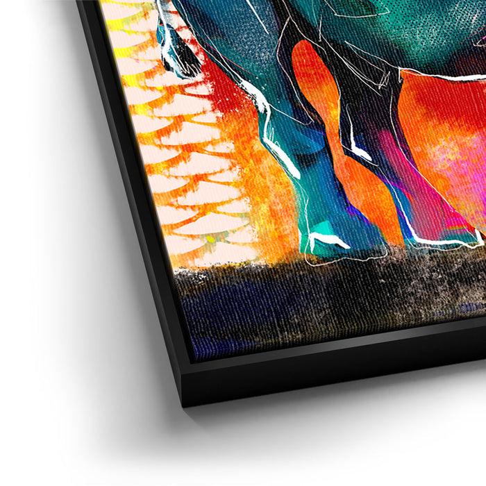 Set against a dynamic background filled with abstract patterns and vivid hues, this piece adds a touch of exotic flair to any space. Perfect for lovers of wild animals and abstract art alike, this artwork celebrates the beauty and power of nature through a modern, artistic lens.