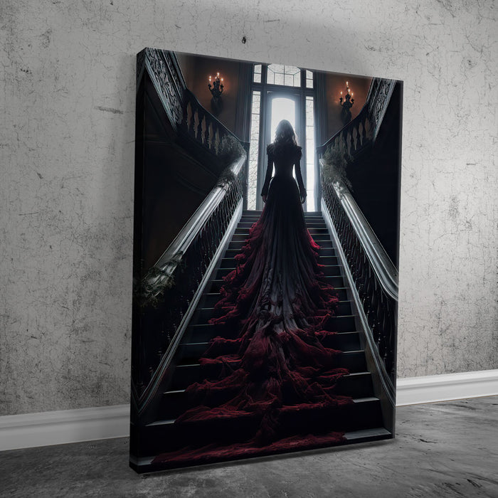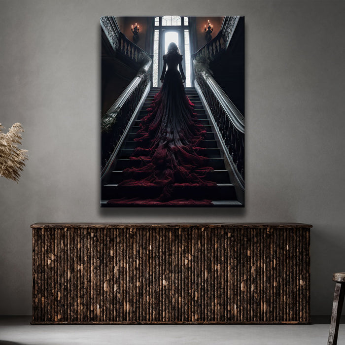 This piece is perfect for adding a touch of gothic elegance to any space, making it ideal for lovers of spooky decor and art enthusiasts drawn to hauntingly beautiful imagery. "Crimson Cascade" seamlessly combines the macabre with the majestic for a truly unforgettable artwork.