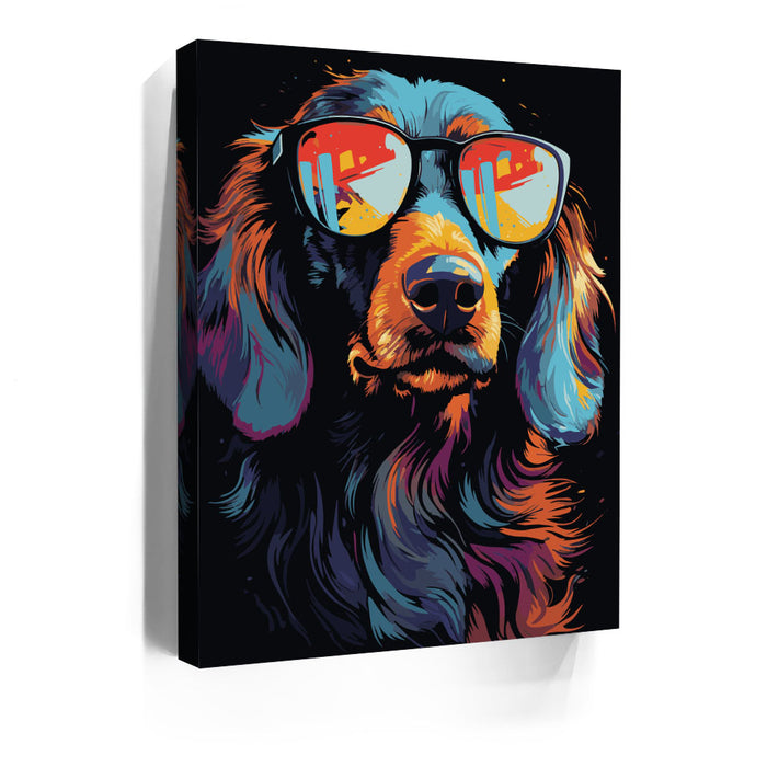 “Dachshund Rockstar” by Stella Ygris delivers a punch of personality with its electric palette and cool-as-ice canine subject. This colorful pop art canvas features a dachshund donning reflective sunglasses, bursting with attitude and modern flair.