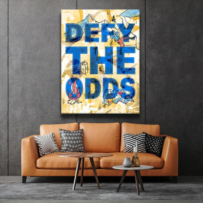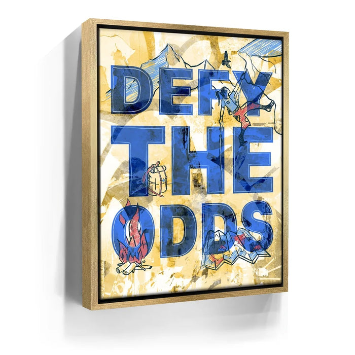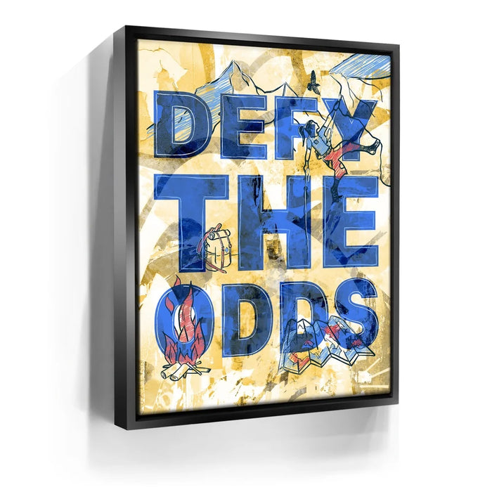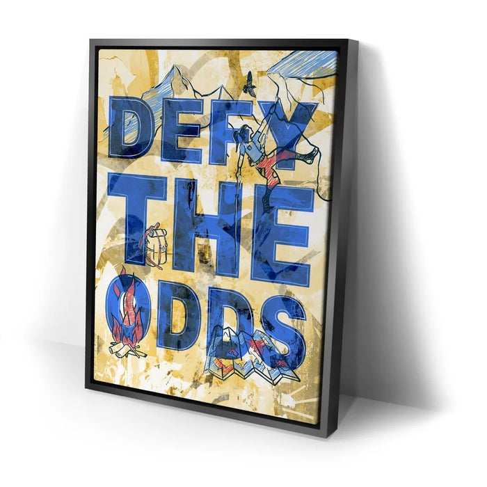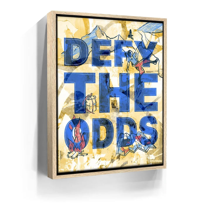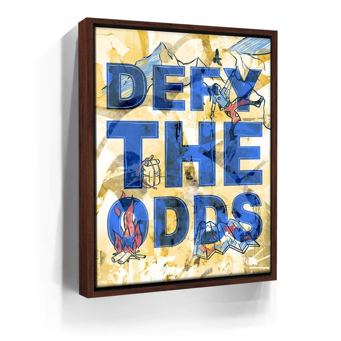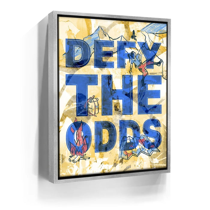 Ideal for spaces that inspire adventure, "Defy The Odds - Sketch" embodies motivation and exploration. With subtle references to maps, fire, and mountain peaks, it’s a perfect addition for anyone who lives to explore and seeks daily inspiration from the great outdoors.