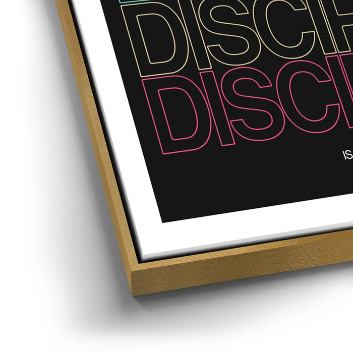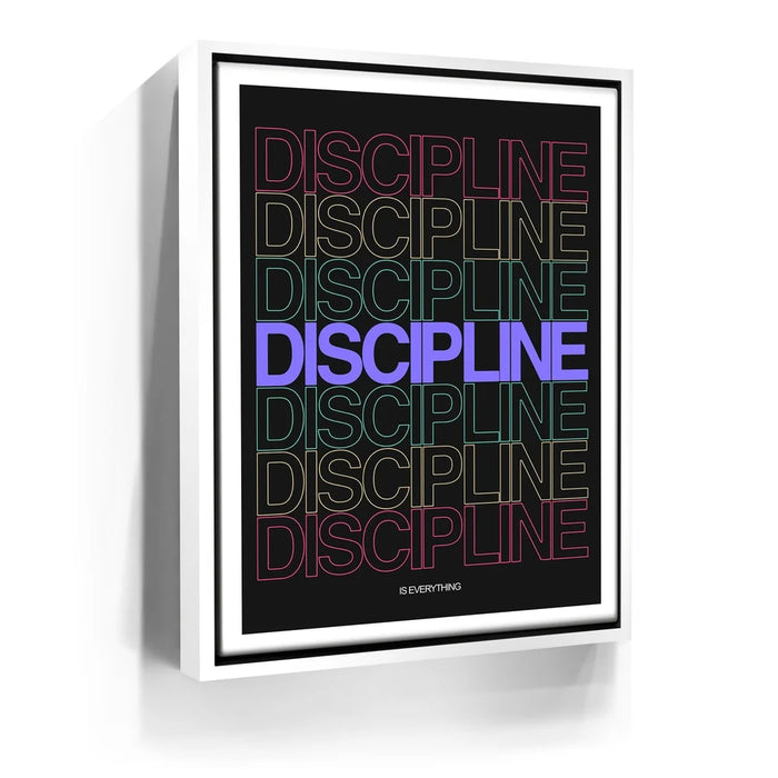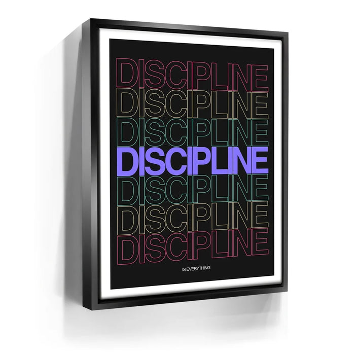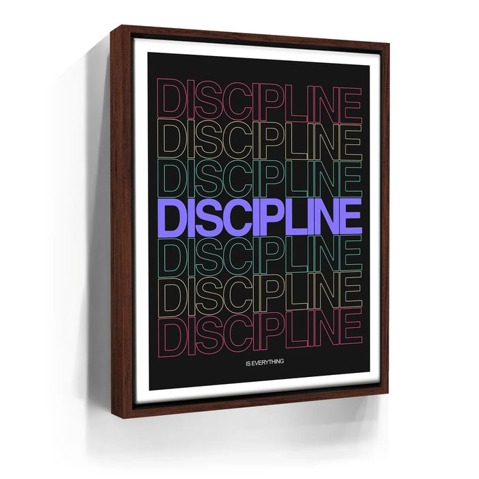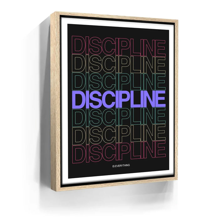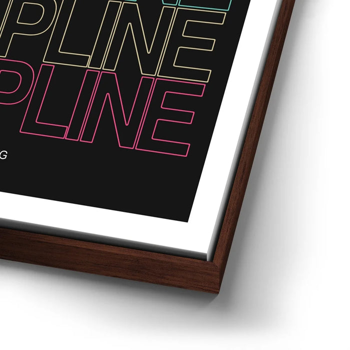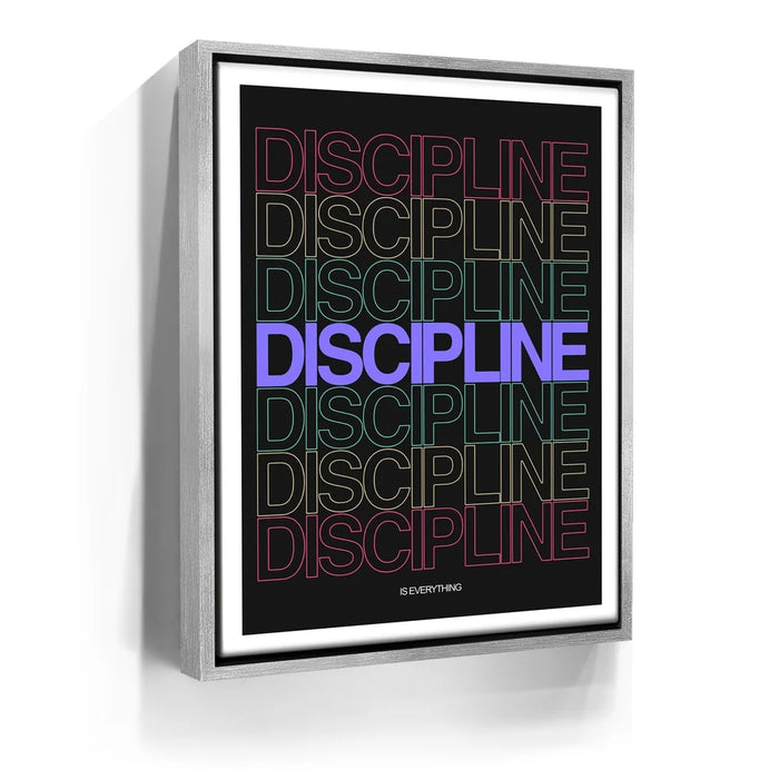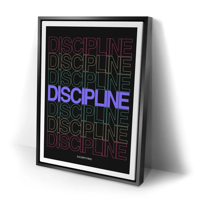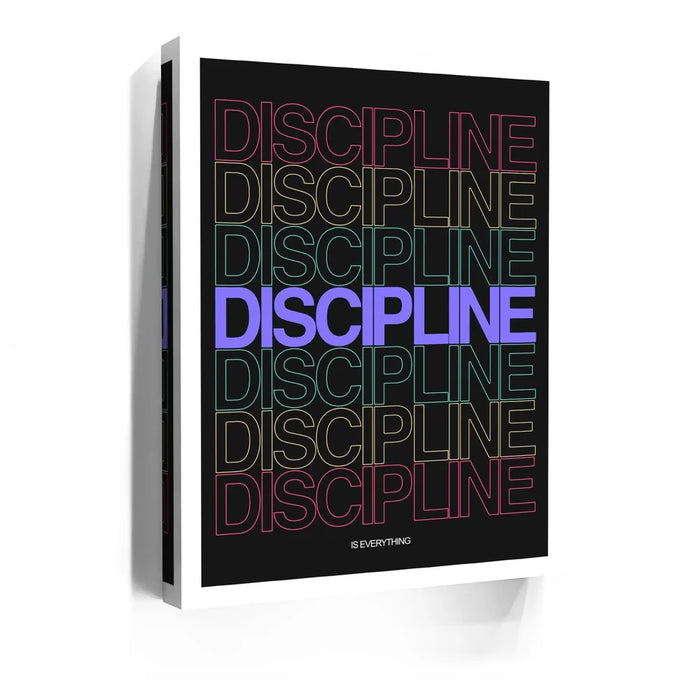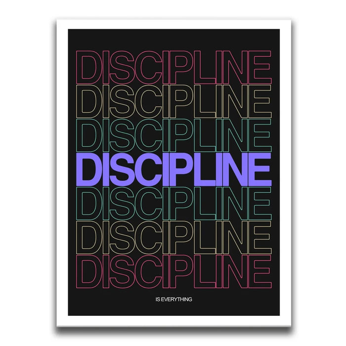 “Discipline Is Everything – Retro” reimagines motivation through a nostalgic lens, merging vintage hues with modern minimalism. The repeated typography creates a hypnotic rhythm—each line a reminder that progress is built on consistency. The bold central word, glowing in cool purple, anchors the composition with quiet authority, commanding focus amidst the colorful repetition.