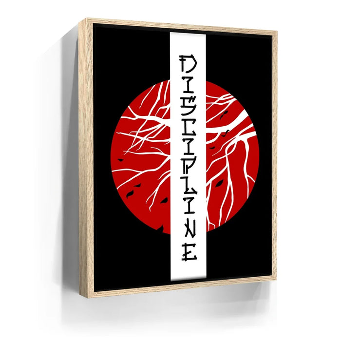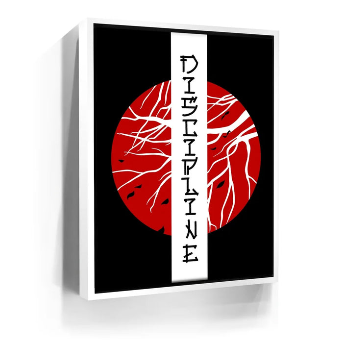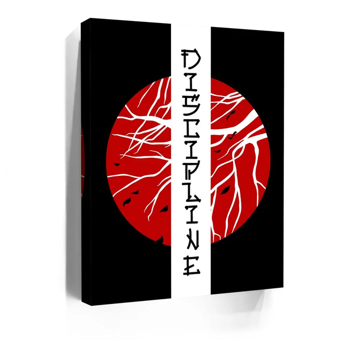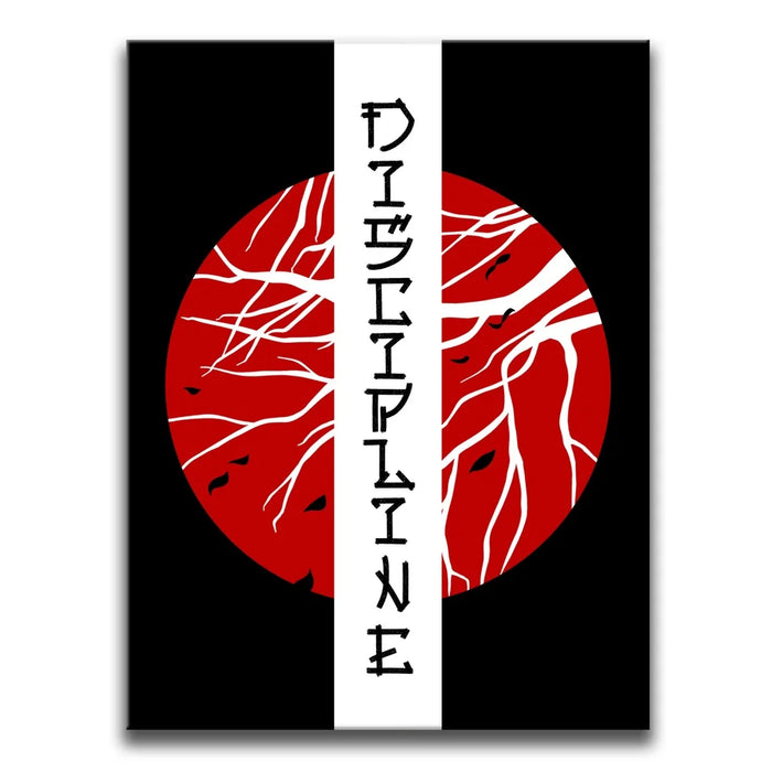 “Discipline Sakura Tree – White” channels the quiet strength and precision of Japanese minimalism through a striking, symbolic design. A bold red circle evokes the rising sun—a timeless emblem of renewal and focus—while stark white branches stretch across it like veins of persistence. The vertical “Discipline” lettering slices through the composition with balance and intent, reinforcing the theme of structure and self-mastery.