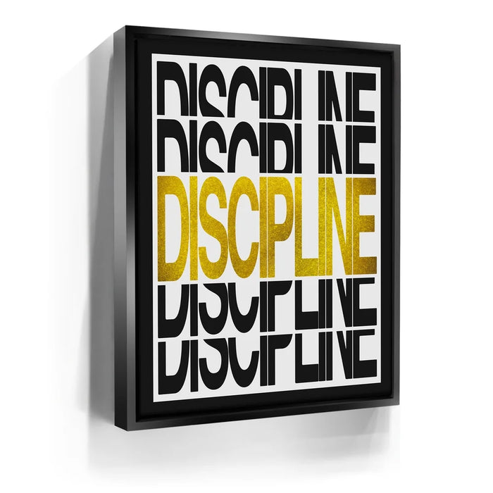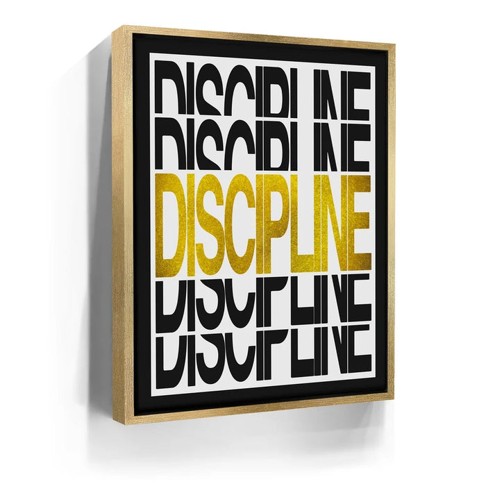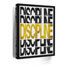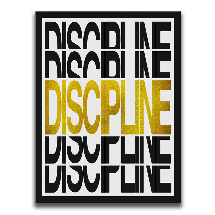 “Discipline Stacks Up – Gold” embodies focus, drive, and ambition through a bold fusion of typography and contrast. The repeated black lettering builds rhythm and structure, while the central gold word glows with power—symbolizing achievement earned through persistence. This commanding design mirrors the process of mastery itself: repetition, consistency, and refinement over time.