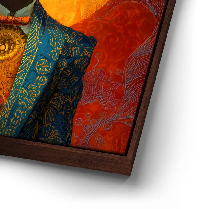 This portrait is a stunning fusion of intellect, spirituality, and Afrofuturist elegance — a visual hymn to genius and grace. “Divine Curriculum” speaks to enlightenment, heritage, and the unshakable power of inner light.