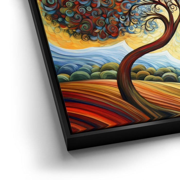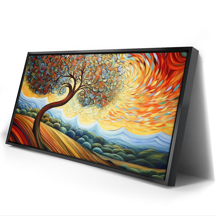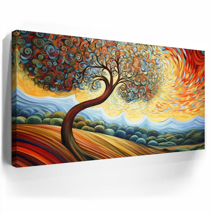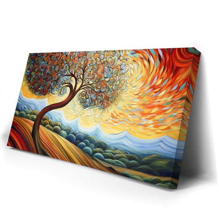 "Divine Harmony" beautifully captures the serenity of nature with its abstract depiction of ocean waves and autumn trees. This vibrant piece combines the calming flow of the sea with the peaceful imagery of fall season leaves, evoking a sense of balance and tranquility in your space.