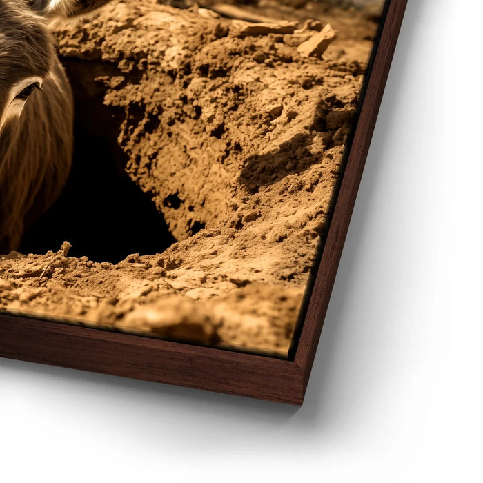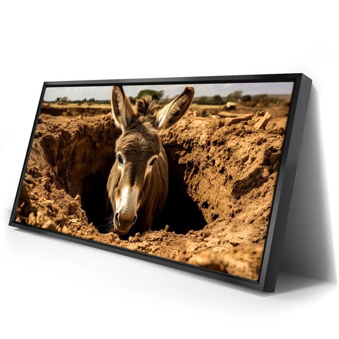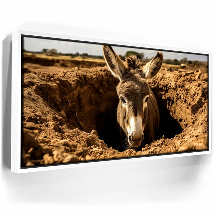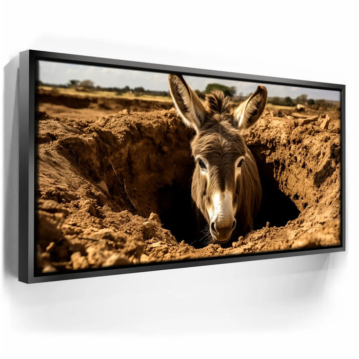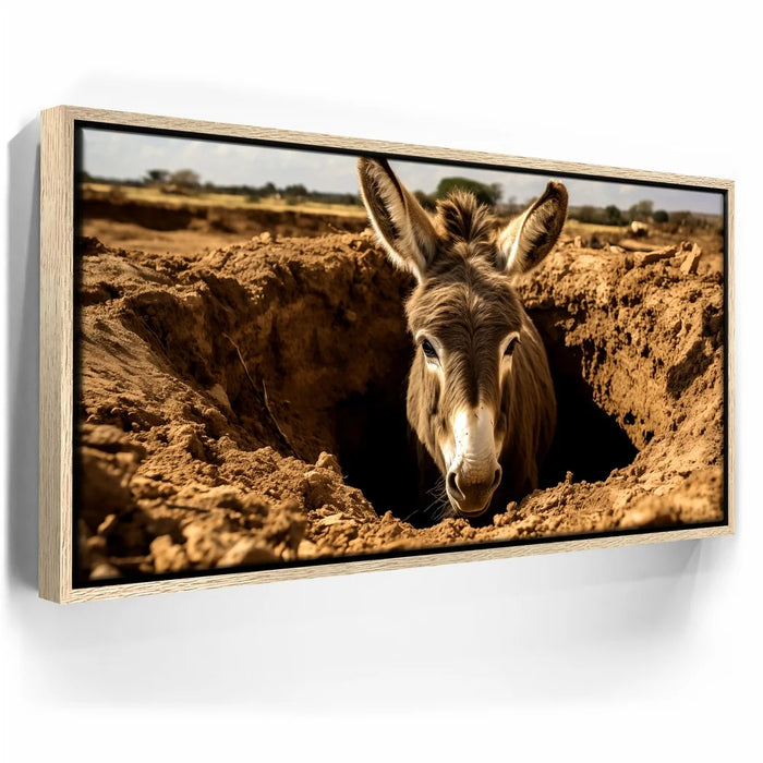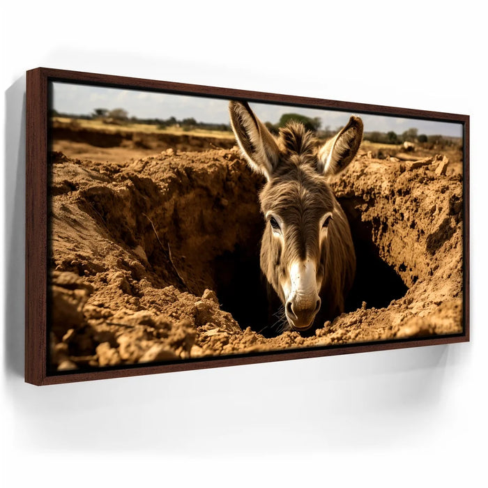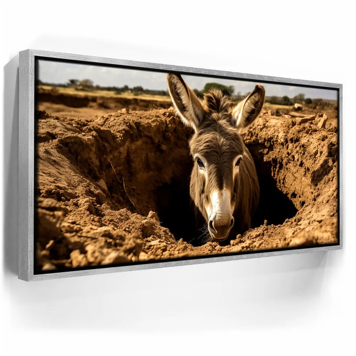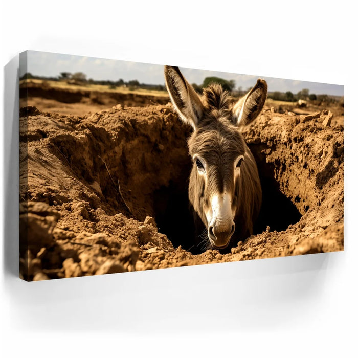 "Don't Be One" by G2 Creative brings humor and a playful twist to the subject of farm animals. Featuring a donkey hilariously stuck in a hole, this piece uses clever humor to remind us not to be an "asshole" in a lighthearted way. The funny depiction of a donkey in a hole adds a quirky charm, making it perfect for animal lovers and fans of humorous art.