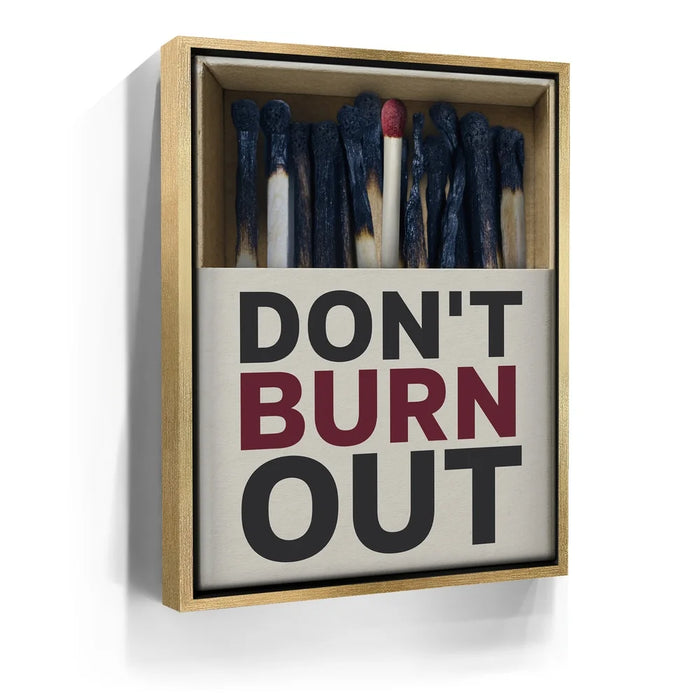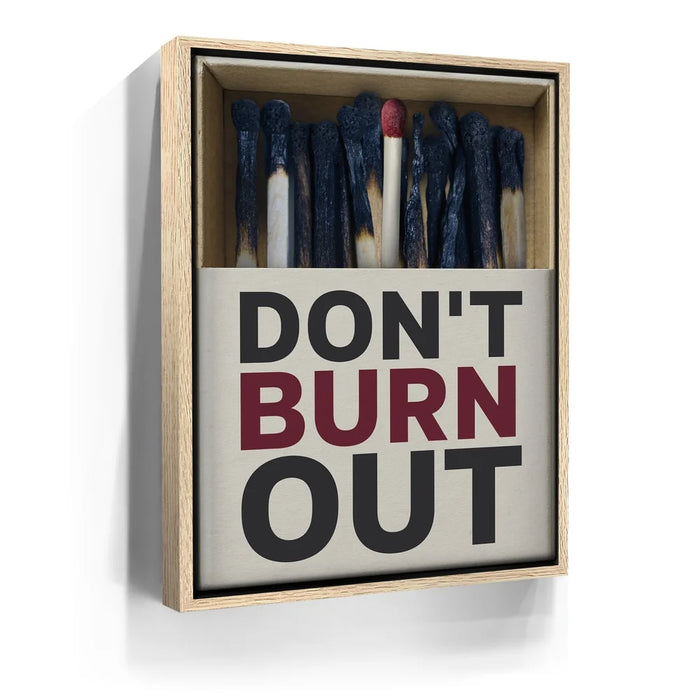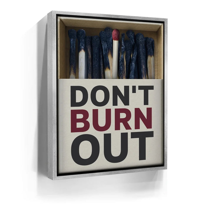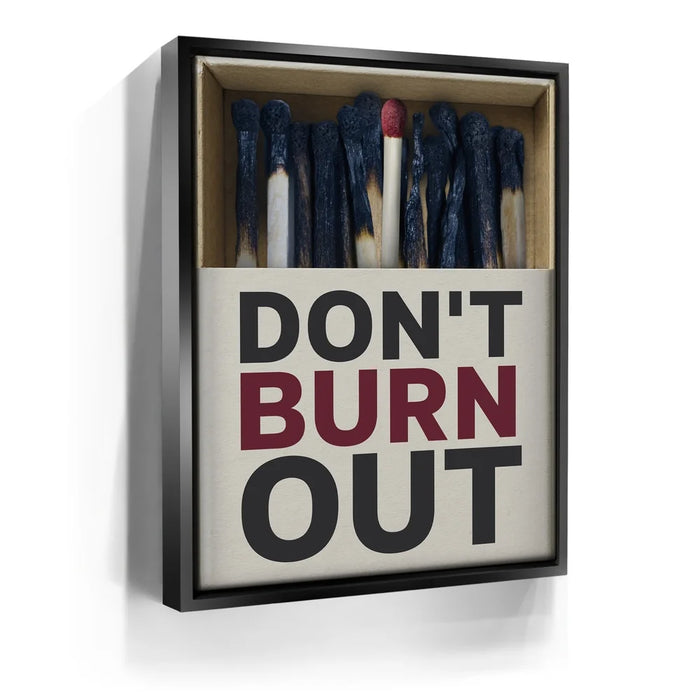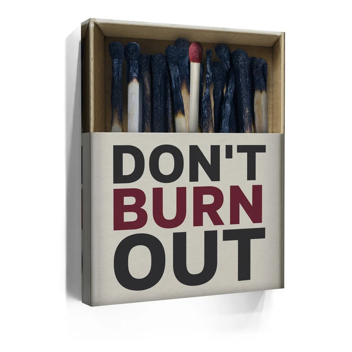 Don’t Burn Out is a powerful visual reminder of self-preservation in a world that glorifies constant motion. The lone unlit match among a set of charred ones becomes a symbol of awareness and balance — a striking metaphor for protecting one’s spark before it’s consumed. The minimalist design and stark contrast between ash and vitality make this piece both modern and deeply resonant. Perfect for any space that values mindfulness, motivation, and mental well-being.