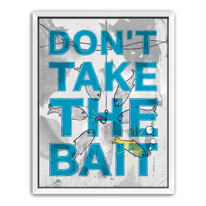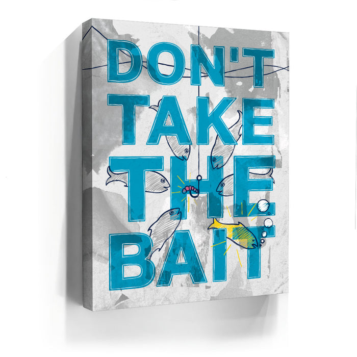 "Don't Take The Bait - Sketch" is a captivating motivational piece that combines playful typography with a clever fishing theme. Featuring a light blue palette and whimsical illustrations, this artwork serves as a reminder to stay true to yourself and avoid distractions. It's perfect for anyone seeking inspiration in their daily life, whether in a home office, study, or creative space.