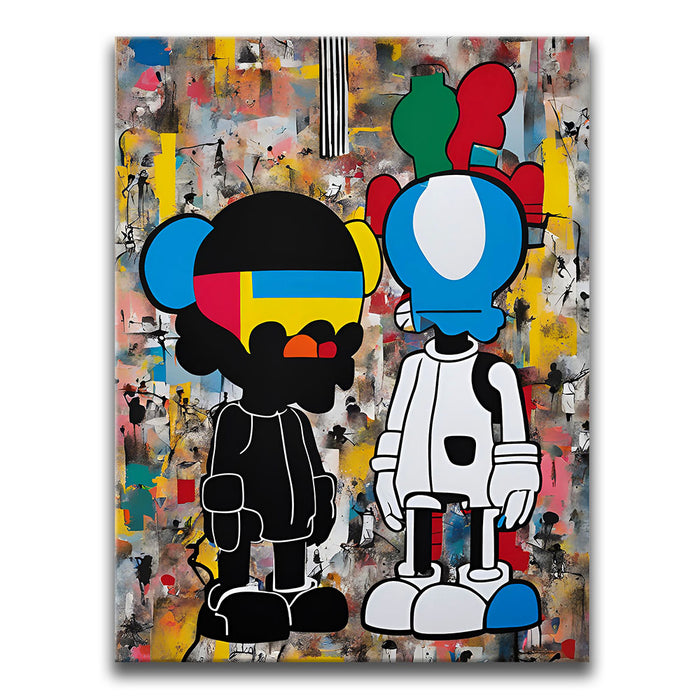 This artwork is ideal for anyone seeking pieces that reflect urban dynamics, contemporary culture, and bold graphic style. With its eye-catching design and thought-provoking themes, "Dualities of the Urban Mind" is a must-have for those interested in modern, urban art that resonates with the pulse of city living.