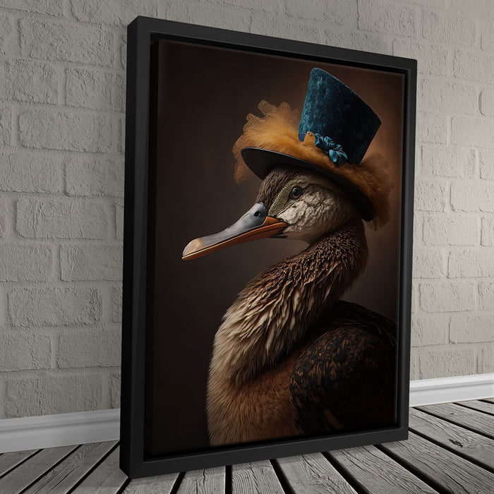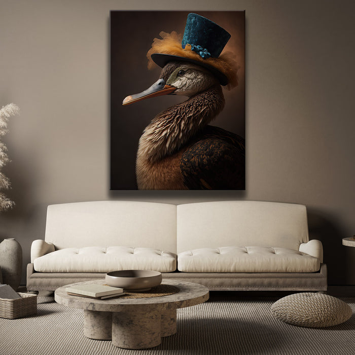 "Duck with Feather Hat III" by Midjourney.Man is a charming portrait that highlights a high-society duck wearing a distinctive feathered hat. This playful and imaginative artwork captures the elegance and humor of farm animals in a sophisticated style. Ideal for animal lovers and those drawn to whimsical portraits, this piece adds a unique and colorful touch to any space.