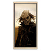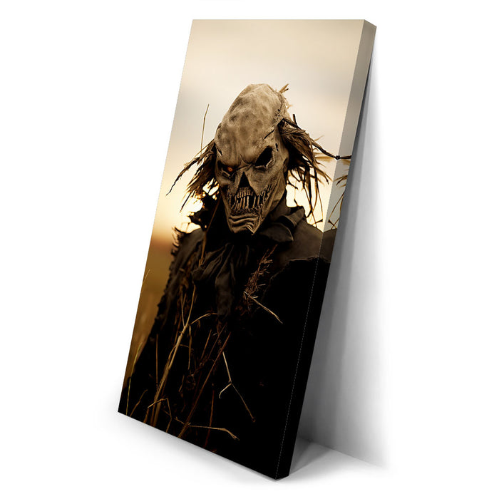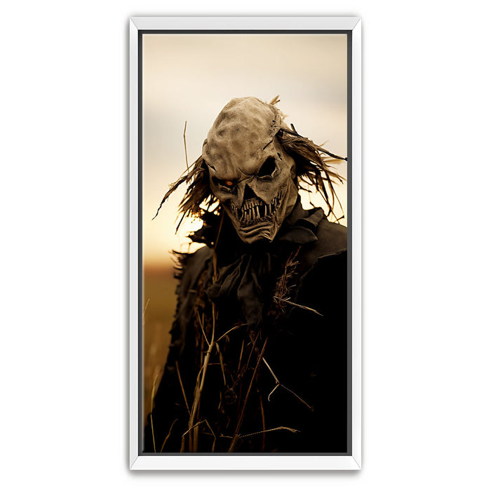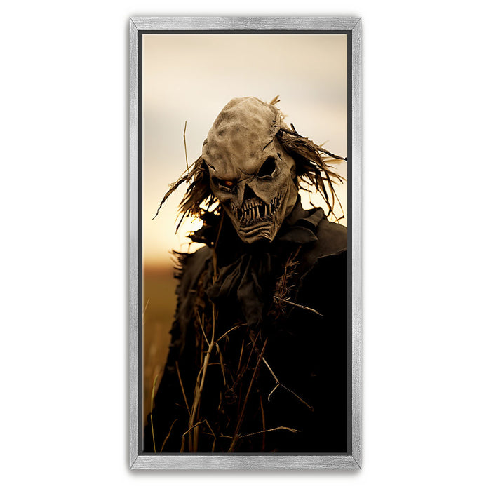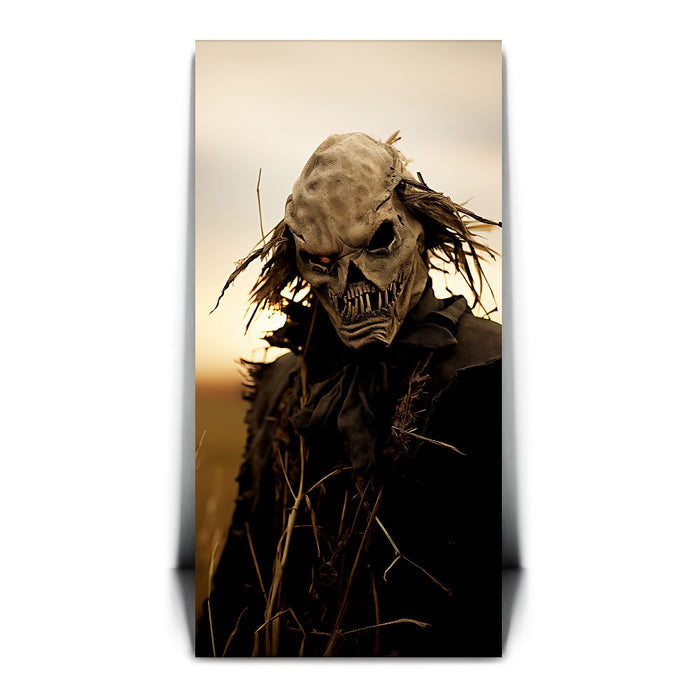 "Dusk's Dread" is a haunting portrayal of a sinister scarecrow-like figure, cloaked in shadows and set against the golden hues of twilight. The eerie design, complete with a skeletal visage and wild, windblown hair, evokes a chilling sense of foreboding, perfectly capturing the unsettling stillness of dusk.