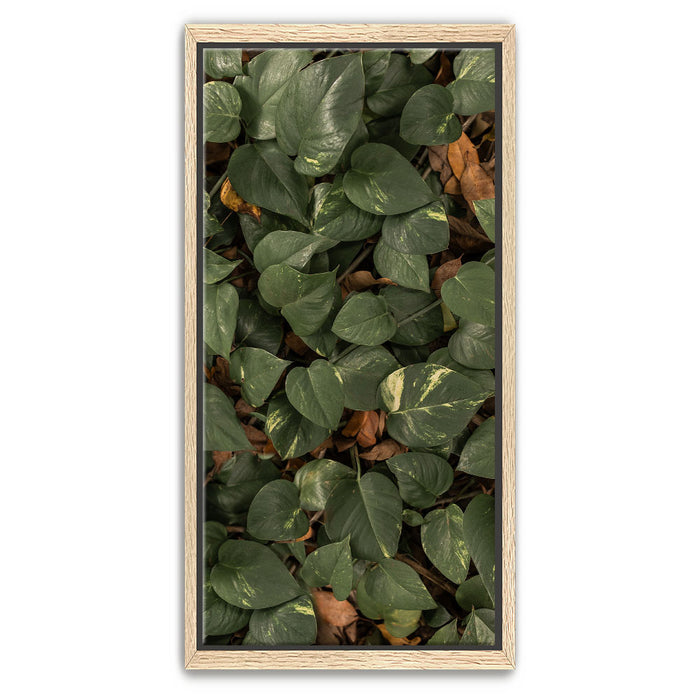 "Earthy Greens - Maui, Hawaii" by Thais Mendonça is a stunning photograph that captures the natural beauty of tropical plants with rich, green leaves. The close-up view highlights the lush foliage, showcasing the intricate patterns and textures of the leaves, with hints of earthy tones from the surrounding environment.