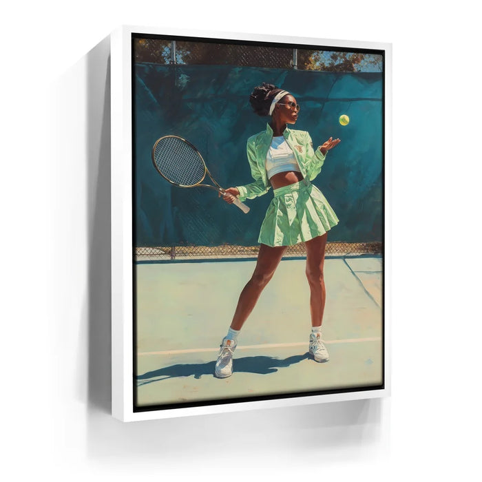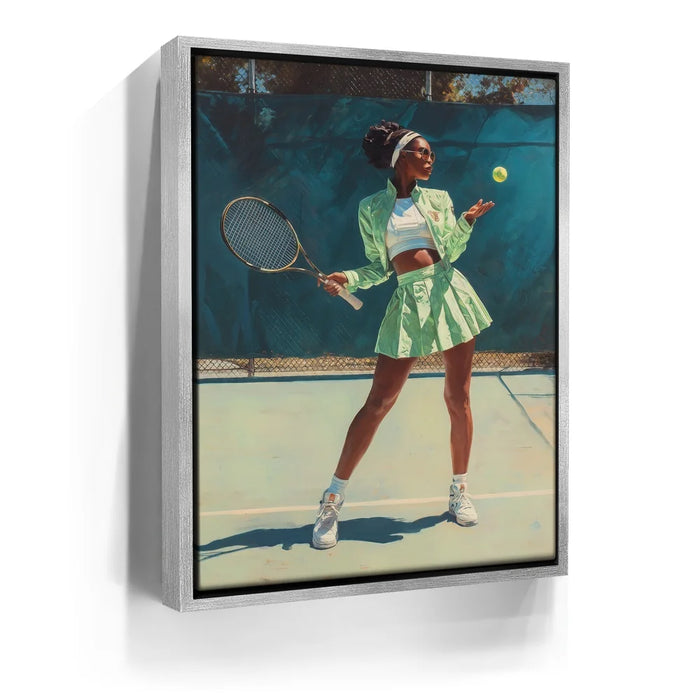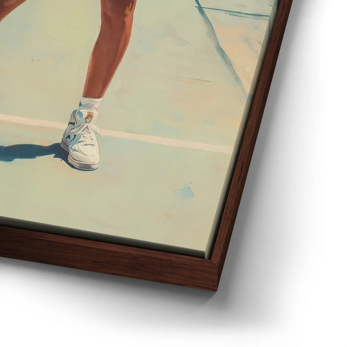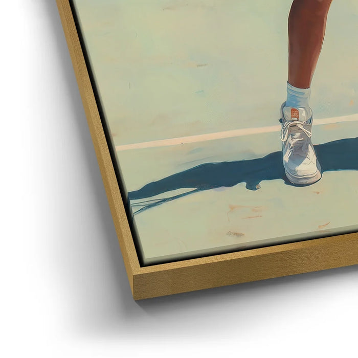 Bathed in warm sunlight and framed by bold court colors, the artwork highlights power, grace, and the joy of the game. “Easy Ace” celebrates movement, fashion, and the cool, composed energy of an athlete fully in her zone.