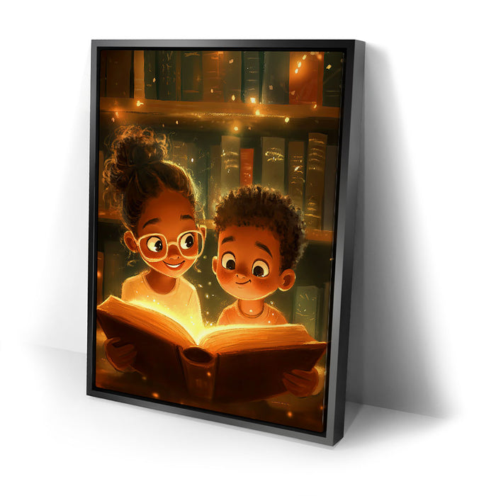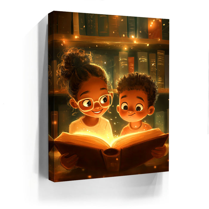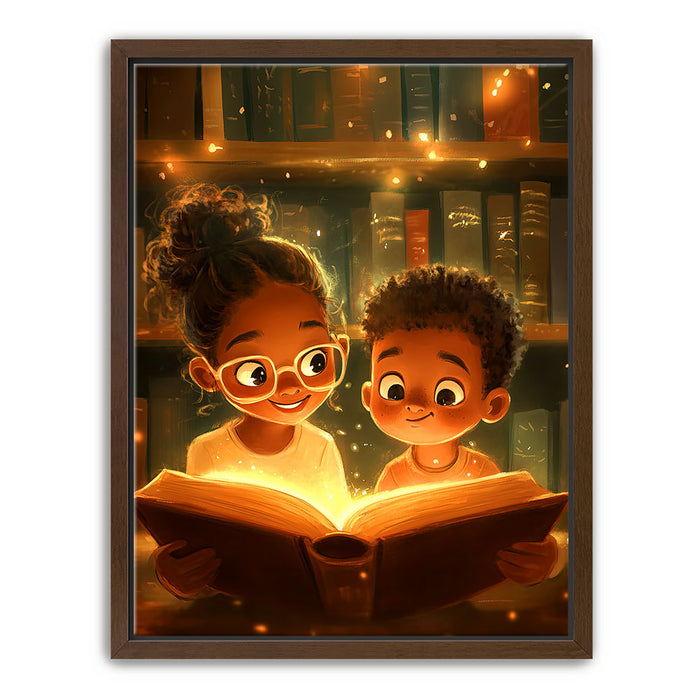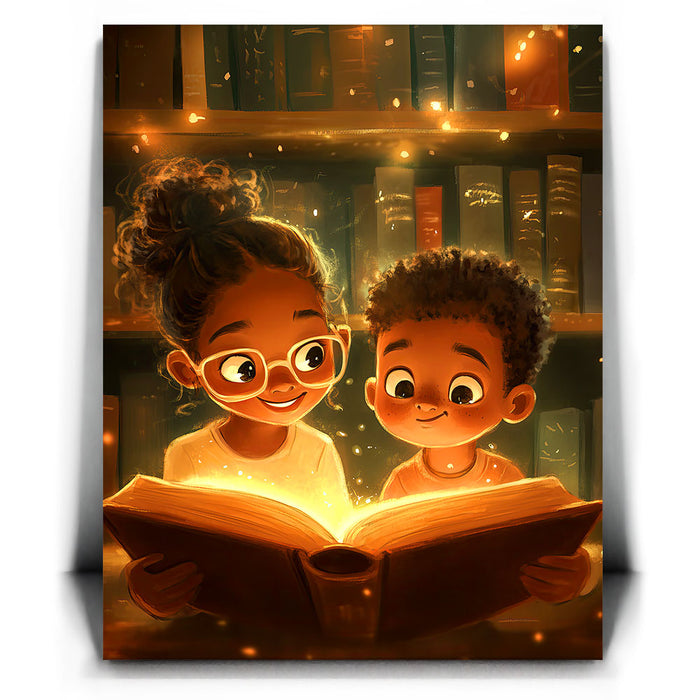 Perfect for book lovers, families, and those who cherish the magic of childhood, "Enchanted Pages" adds warmth and inspiration to any space. This artwork is ideal for libraries, children's rooms, or homes, celebrating the transformative power of stories.