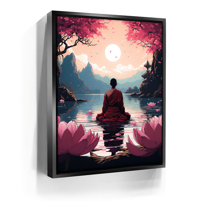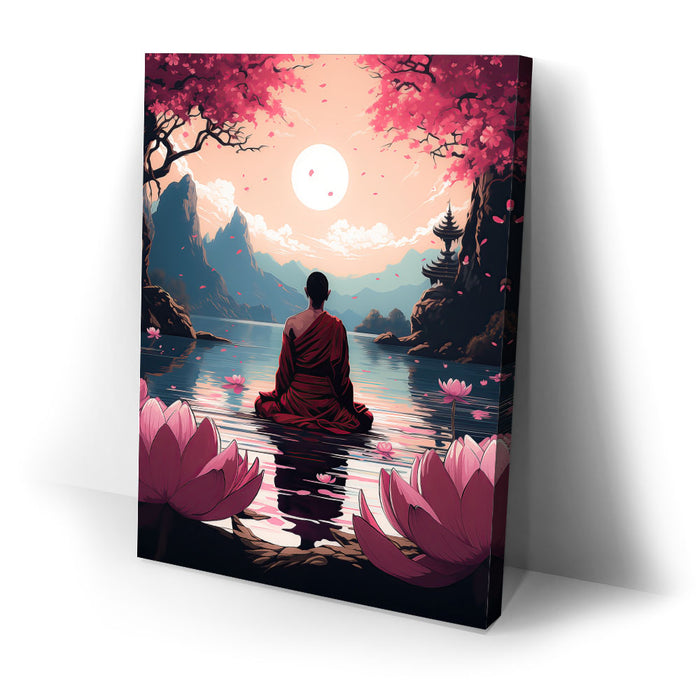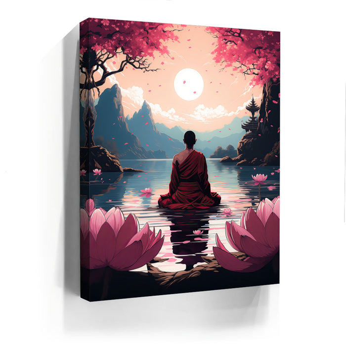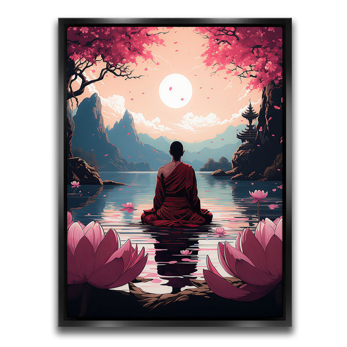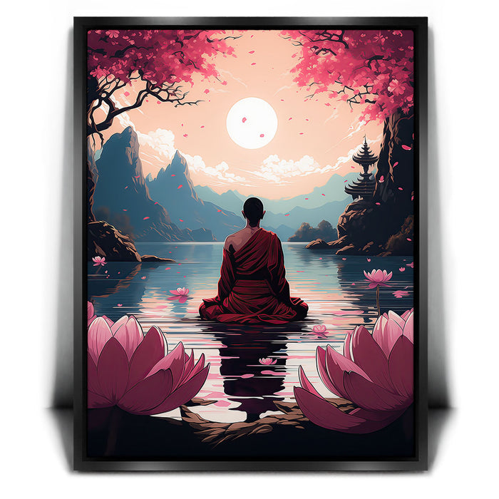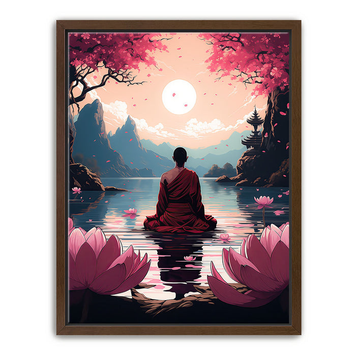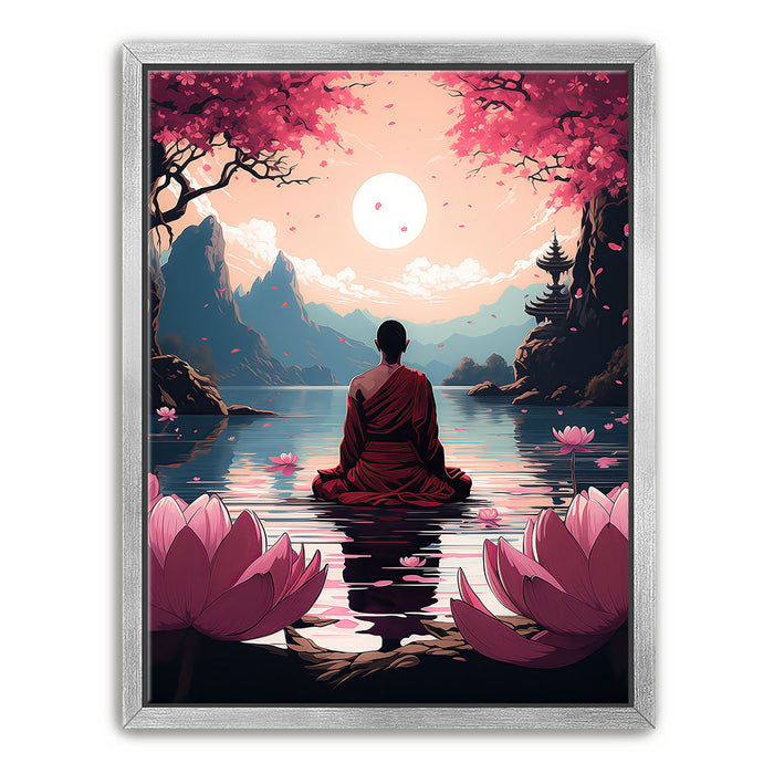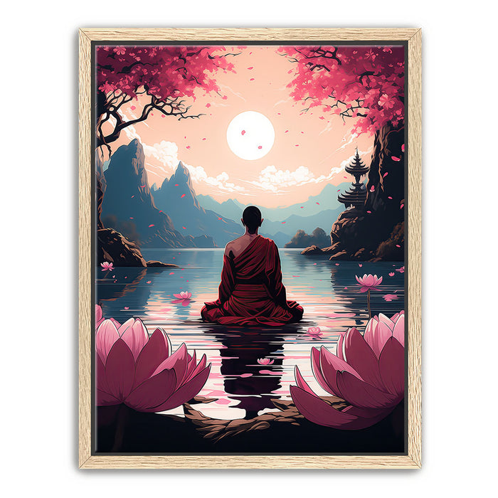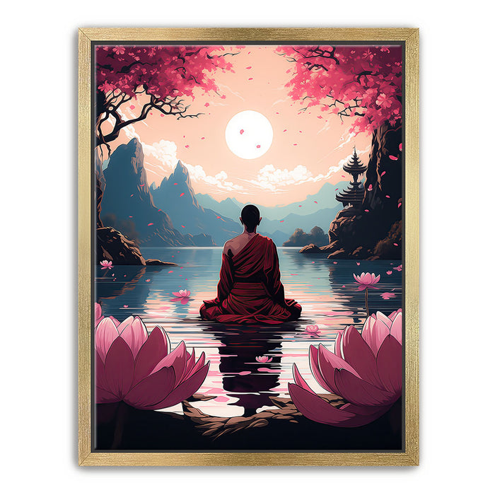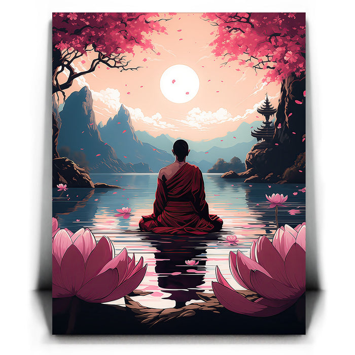"Every Journey Begins With A Single Step" by Stella Ygris is a zen-inspired artwork that evokes a sense of calm and introspection. Featuring tranquil elements like flowing water, mountainscapes, and cherry blossoms, this piece blends the serene beauty of nature with the reflective practice of meditation. The warm sunlight, blooming flowers, and peaceful lake create a harmonious scene that encourages mindfulness.