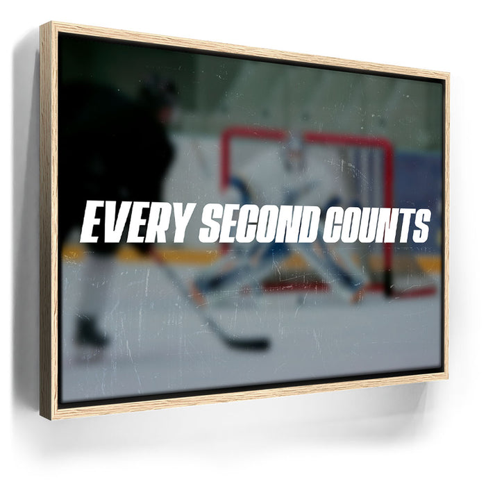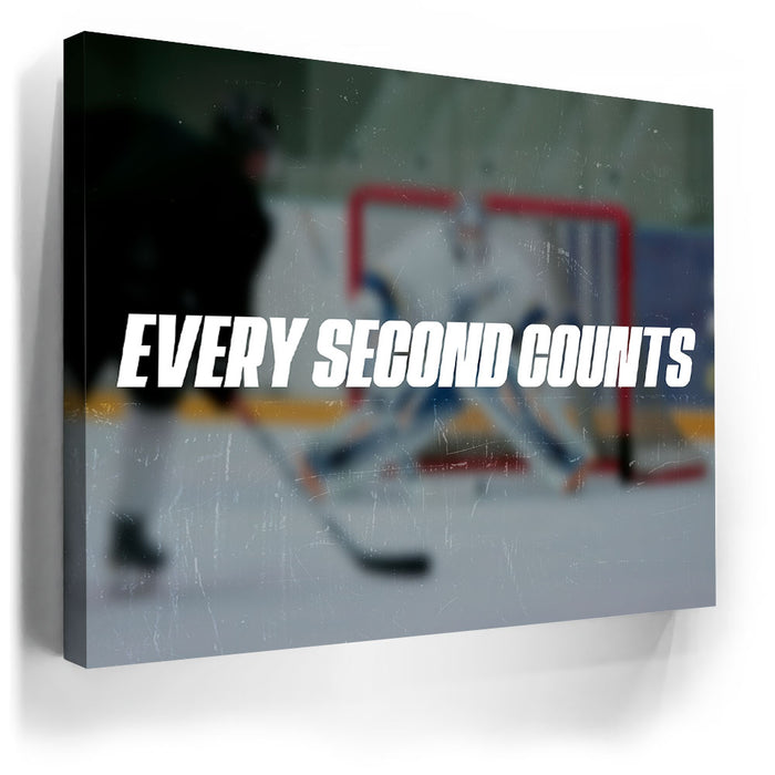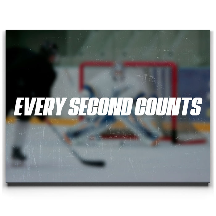 “Every Second Counts – Hockey” is a bold, motivational tribute to the intensity and precision of the rink. With blurred motion capturing a critical play and powerful typography taking center ice, this canvas print is a reminder that one moment can change the game.