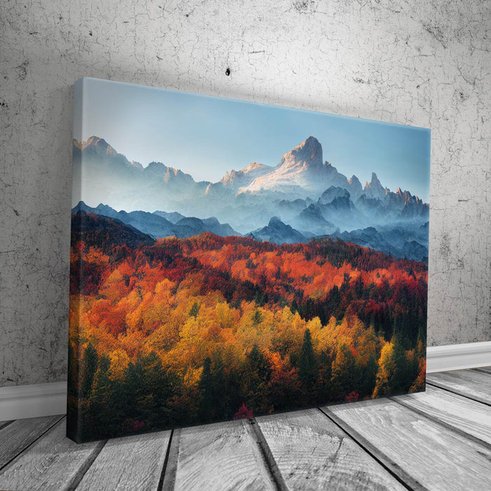 "Fall Mountain Landscape III" by Midjourney.man captures the serene beauty of the autumn season in a stunning mountain and forest setting. The piece showcases vibrant fall foliage, with leaves in full color and the majestic mountain range serving as the perfect backdrop. This breathtaking landscape art evokes the tranquility and freshness of the fall season, ideal for nature lovers and those who appreciate the beauty of seasonal changes.