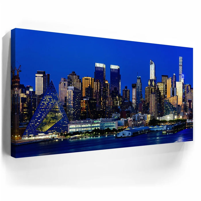 This stunning night view highlights the architectural diversity and nonstop energy of Midtown Manhattan, offering a timeless tribute to the brilliance of New York’s skyline.