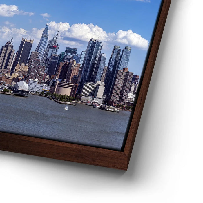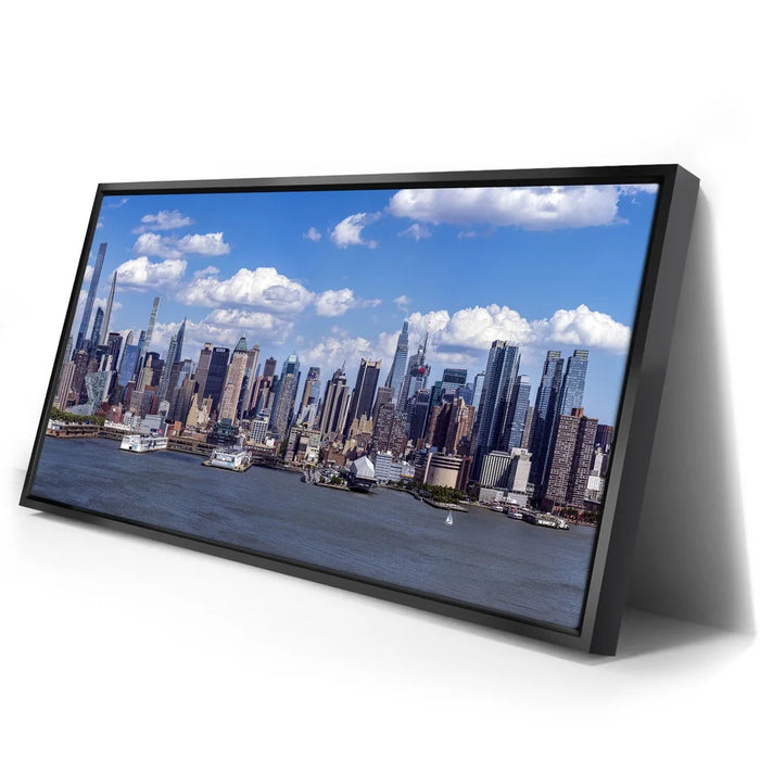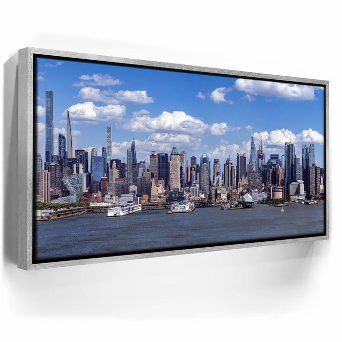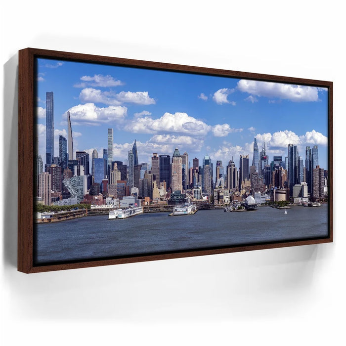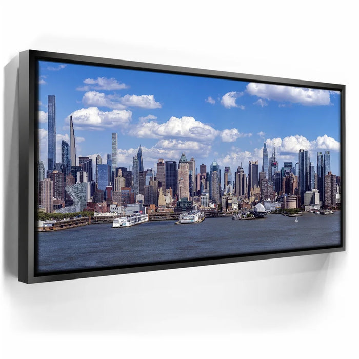 “Famous Midtown Manhattan Skyline View In Daylight - 2 Of 3” by Barbarossa presents a crystal-clear panorama of New York City’s iconic Midtown skyline. Bathed in natural daylight, the towering skyscrapers rise above the Hudson River, with sharp architectural detail and vibrant blue skies creating a picture-perfect cityscape.