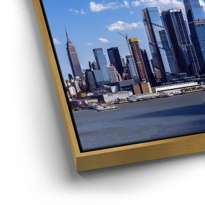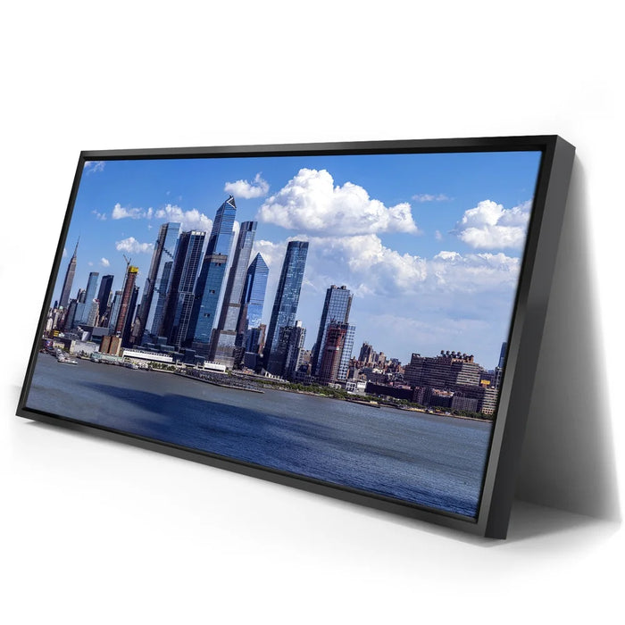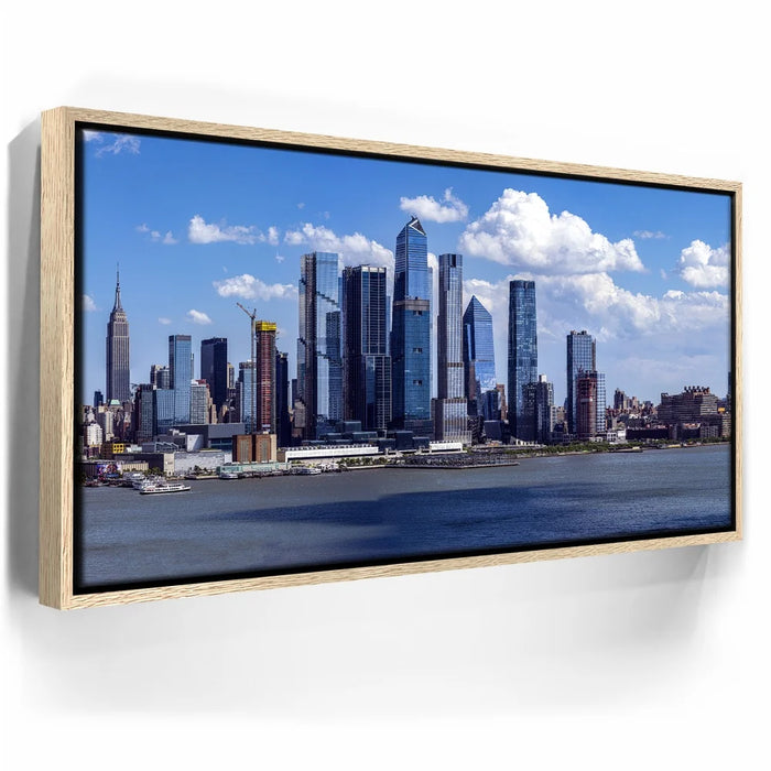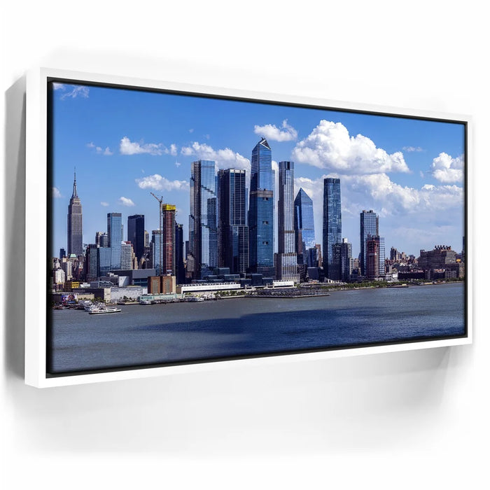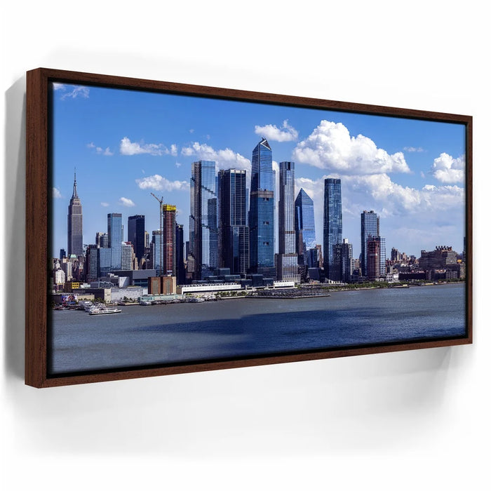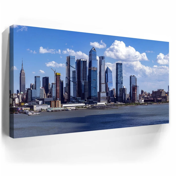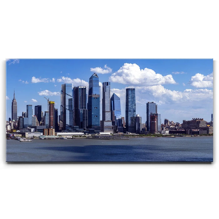 “Famous Midtown Manhattan Skyline View In Daylight - 3 Of 3” by Barbarossa captures the brilliance of New York City’s modern architecture under clear blue skies. With the Empire State Building standing tall to the left and the shimmering glass towers of Hudson Yards dominating the center, this panoramic cityscape highlights the evolving beauty of Midtown Manhattan.