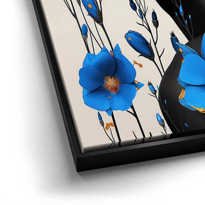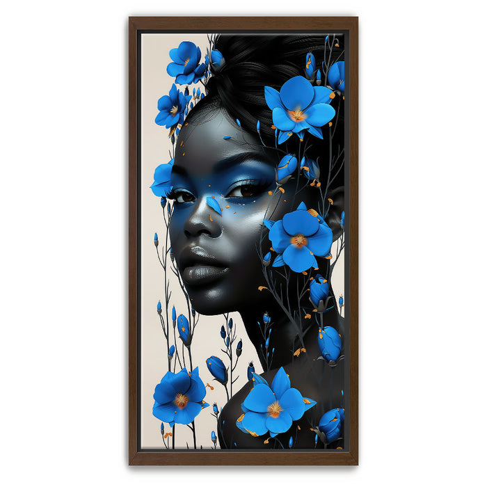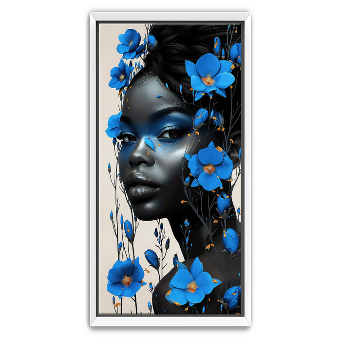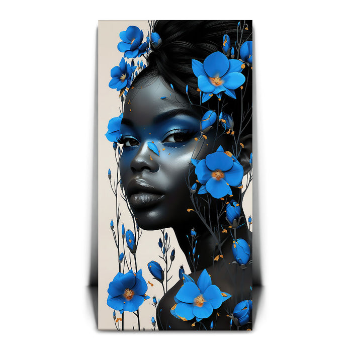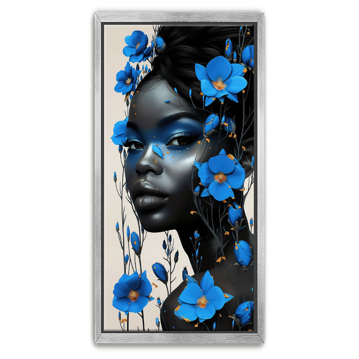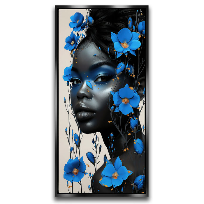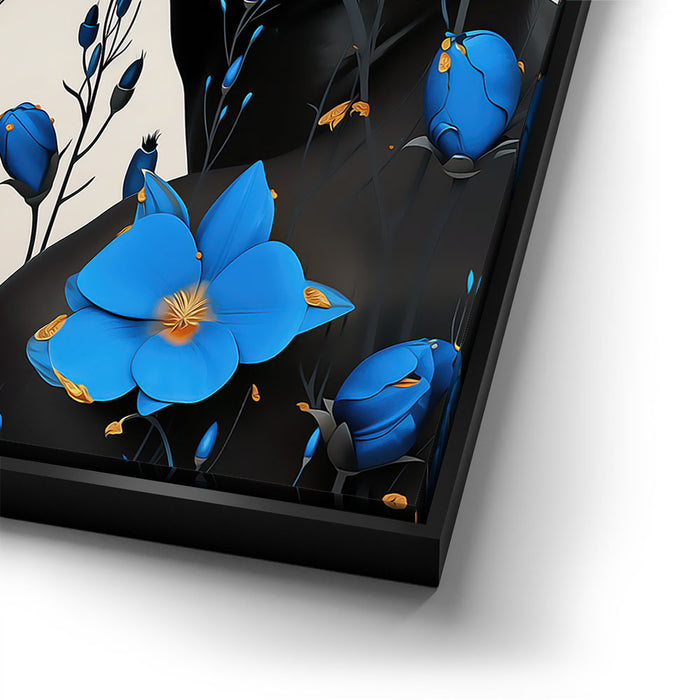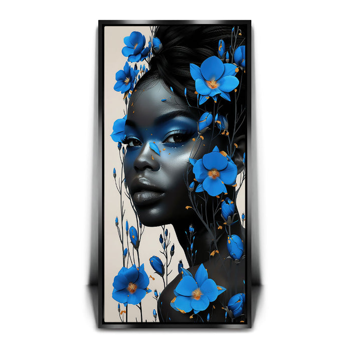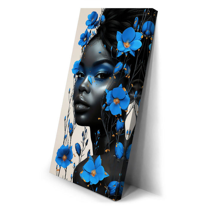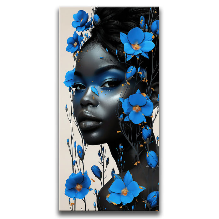 "Feminine Deep Blue" by Stella Ygris is a captivating piece of abstract art that celebrates the essence of feminine beauty through rich blue tones and soft floral elements. This striking artwork features a beautiful woman immersed in a world of vibrant blue flowers and delicate flower petals, blending abstract expression with elegance and sensuality.