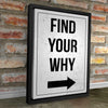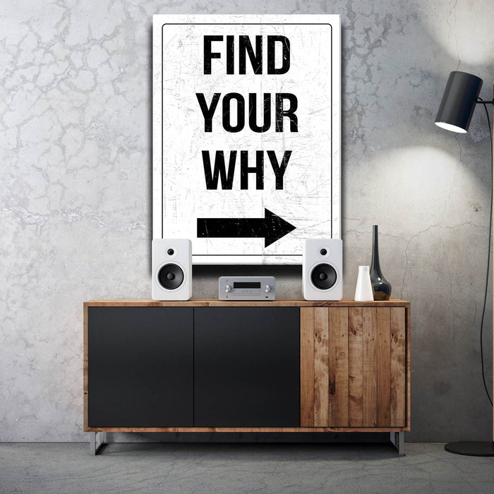 "Find Your Why - Street Sign I" is a motivational artwork that encourages self-discovery and success through bold typography. Featuring the powerful message "Find Your Why," this piece is designed to inspire positivity and personal growth, making it an ideal addition to spaces where motivation is key.