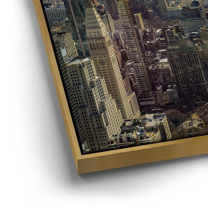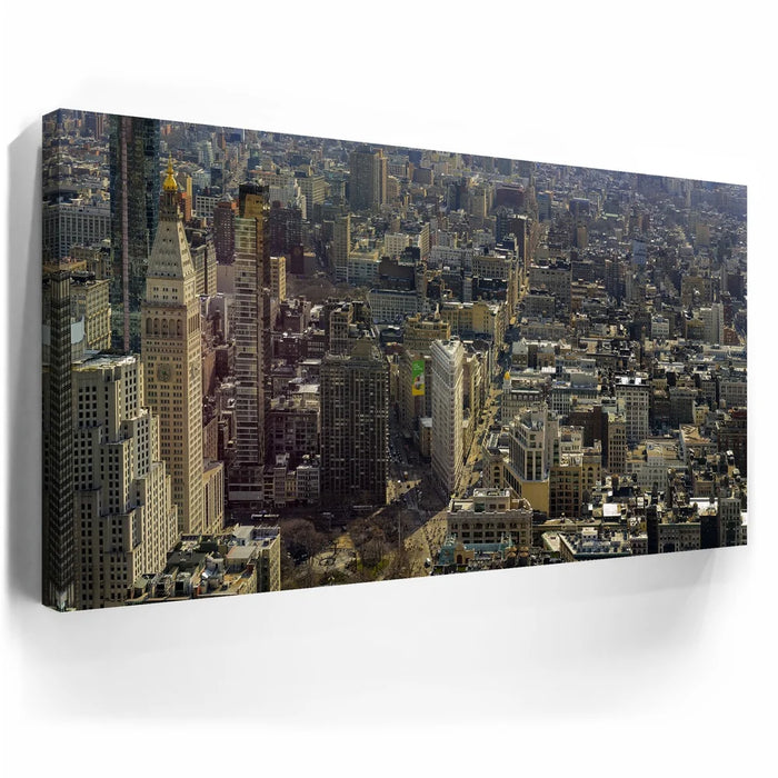 This panoramic perspective showcases the timeless charm and density of Manhattan’s skyline, making it a striking piece for admirers of urban photography and New York City landmarks.
