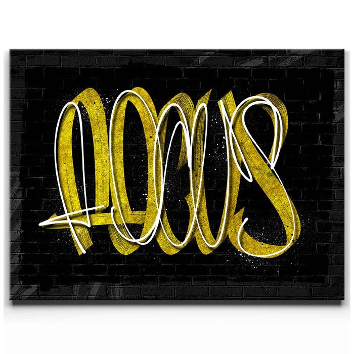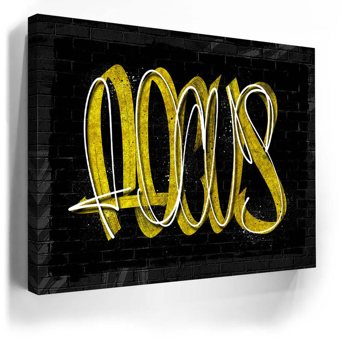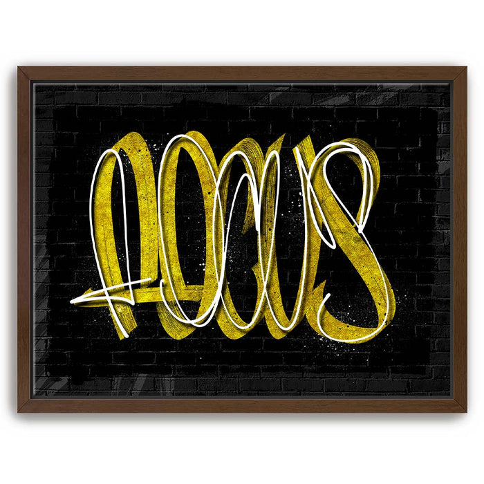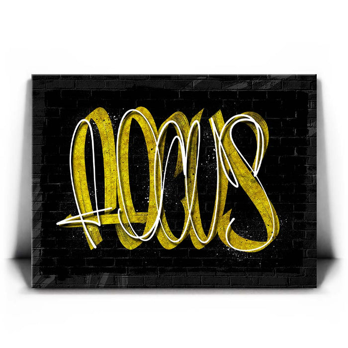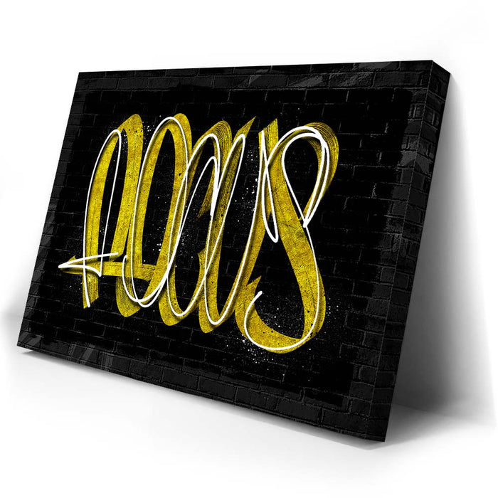 "Focus - Calligraphy - Gold" is a striking piece that combines motivational messaging with elegant typography. The word "Focus" is rendered in beautiful calligraphy, emphasizing the power of concentration and clarity. The gold tones add a luxurious touch, enhancing the visual appeal of the artwork.