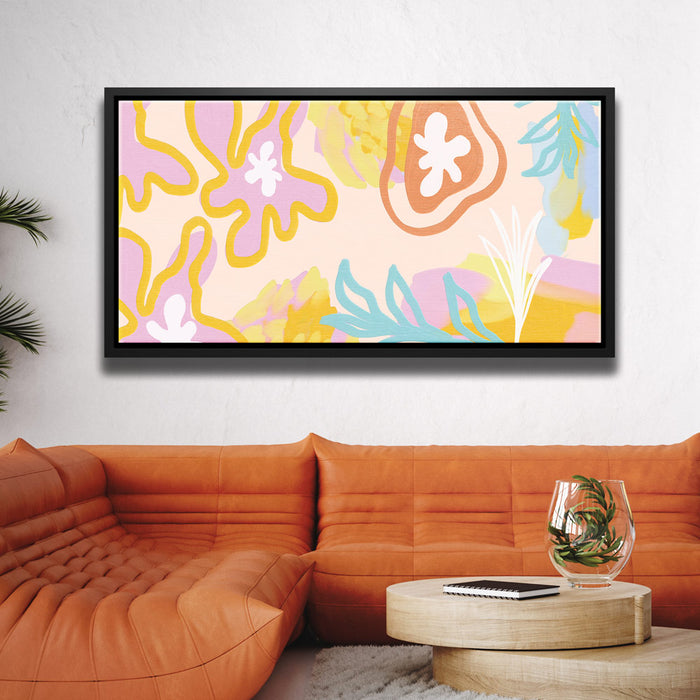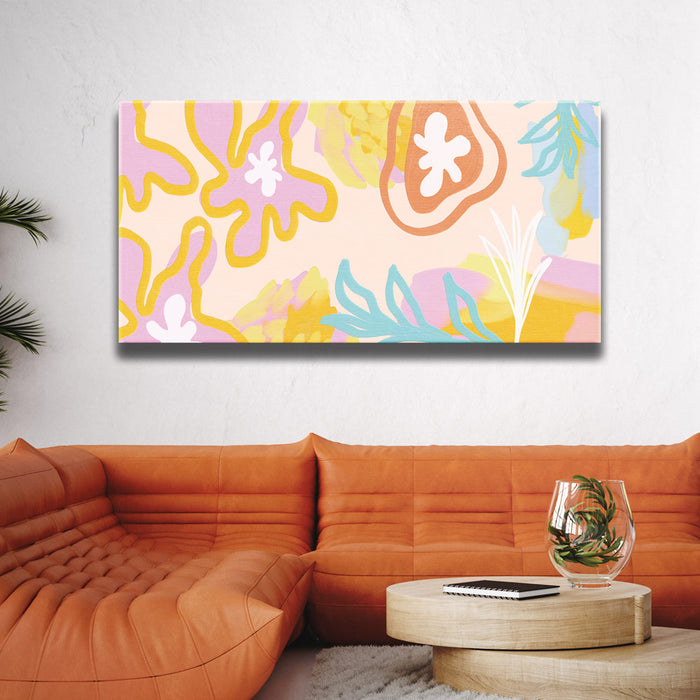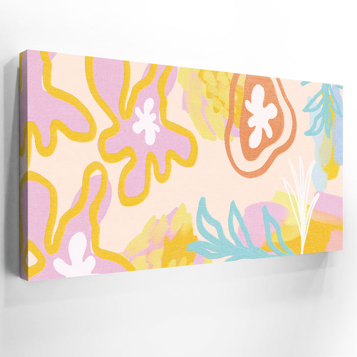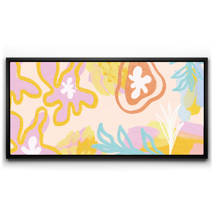 "Fruit Salad" is a delightful abstract art piece that combines vibrant colors and organic patterns inspired by wildflowers and fresh fruit. With hints of bananas, nectar, and a springtime palette, this artwork creates a refreshing and lively atmosphere. Its dynamic design is perfect for adding a touch of nature and energy to your space.