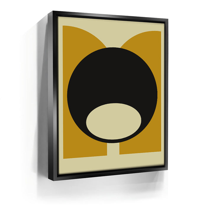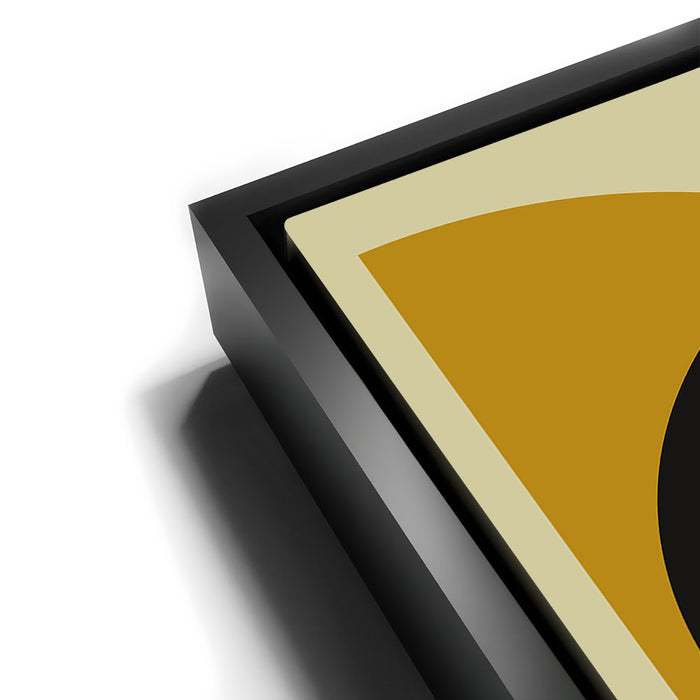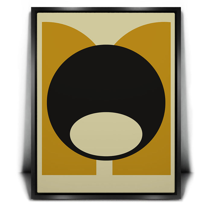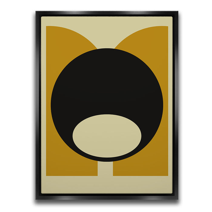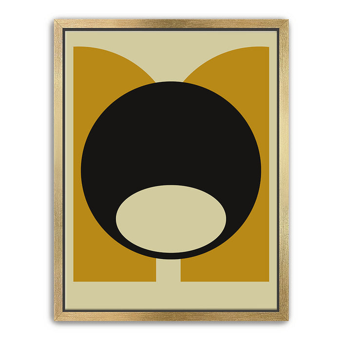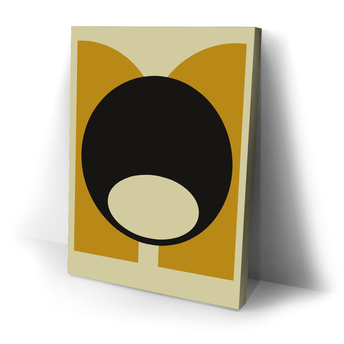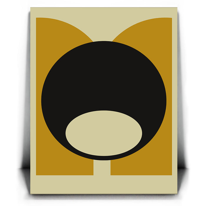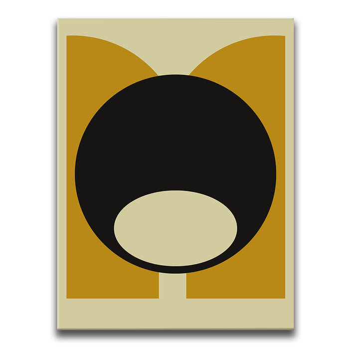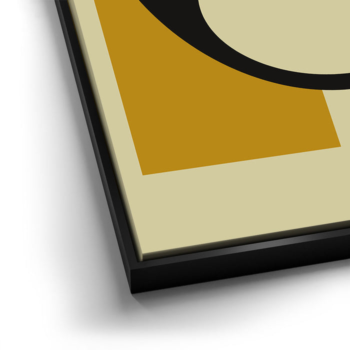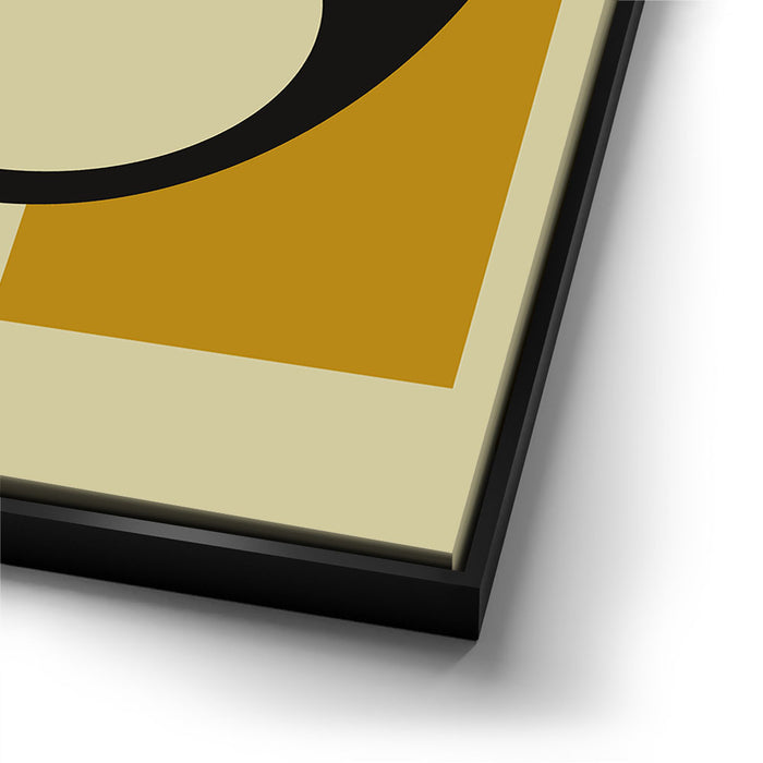 "Funky Fresh II (Duo)" by artist George Rosaly is a striking piece of minimalist abstract wall art featuring bold geometrical shapes and a dominant yellow color palette, including shades of mustard and black. Designed to complement modern interiors, especially hallways, this abstract artwork blends circles and clean lines to create a fresh, contemporary vibe.