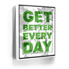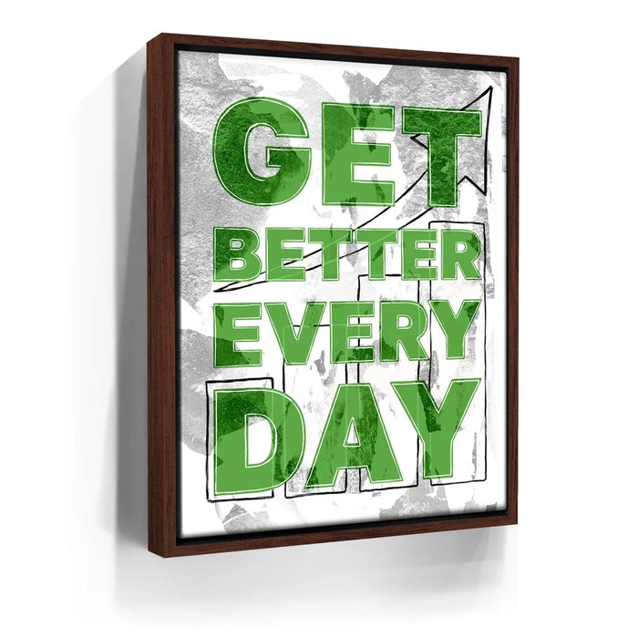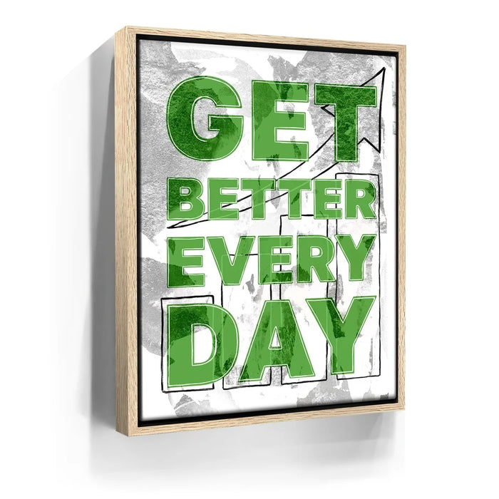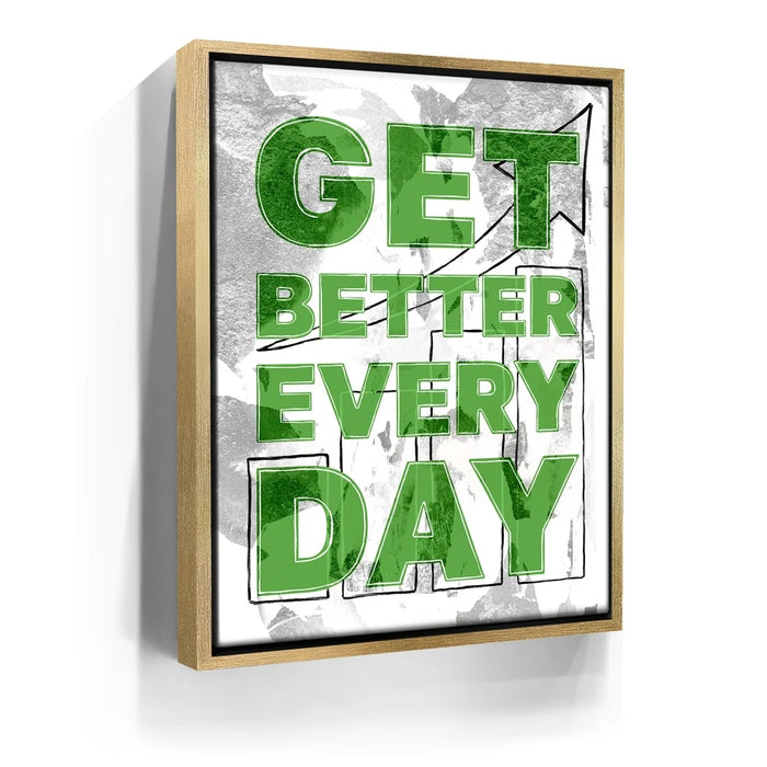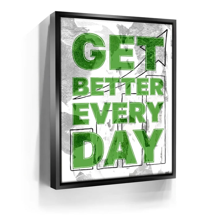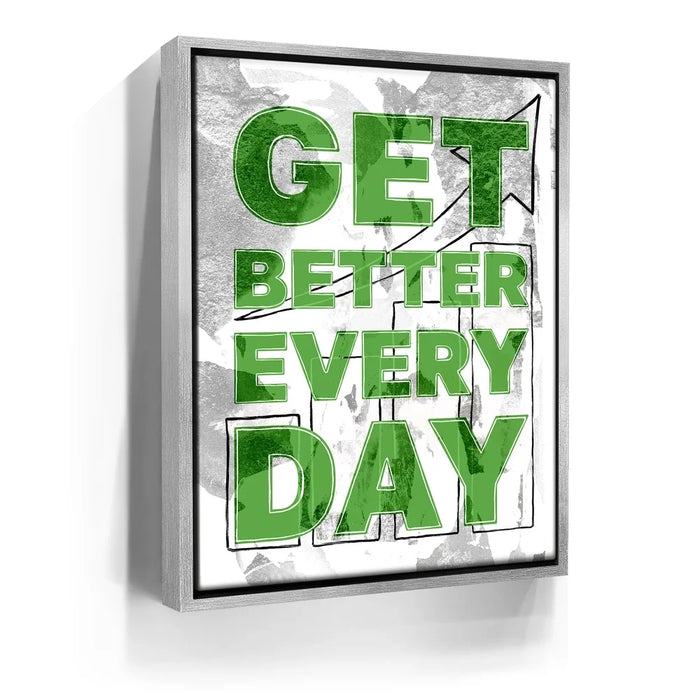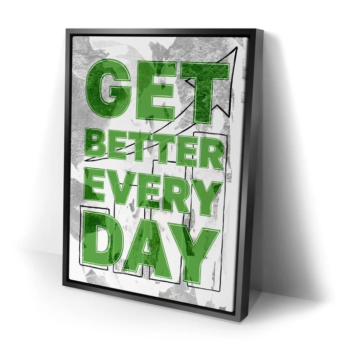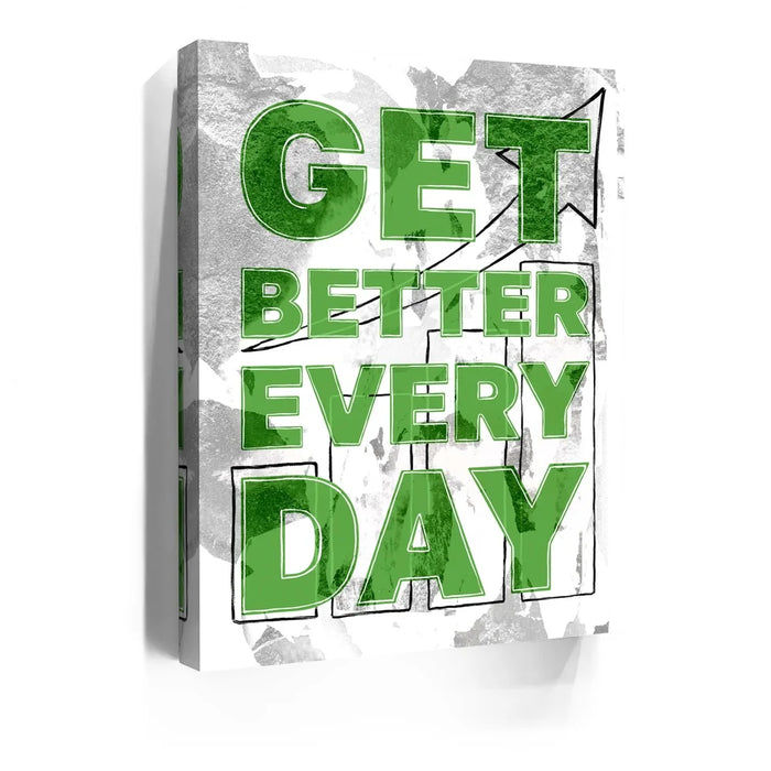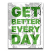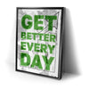 “Get Better Every Day – Sketch” captures the essence of progress through simplicity and grit. Bold green typography dominates the composition, layered over a rough sketch of upward arrows that symbolize growth, persistence, and forward motion. The textured grayscale background contrasts with the vibrant lettering, amplifying the message’s urgency and authenticity.
