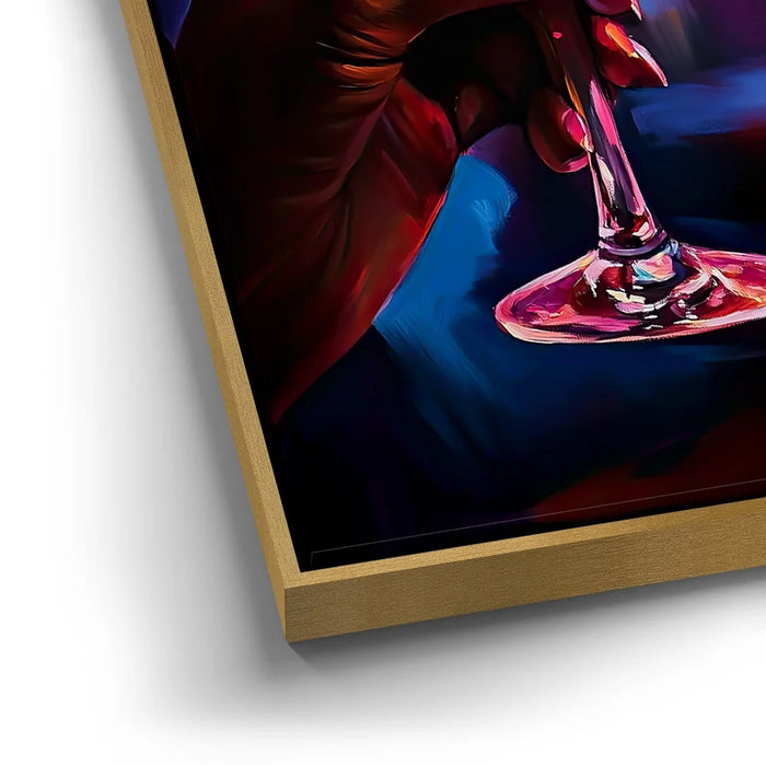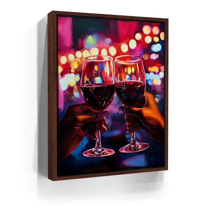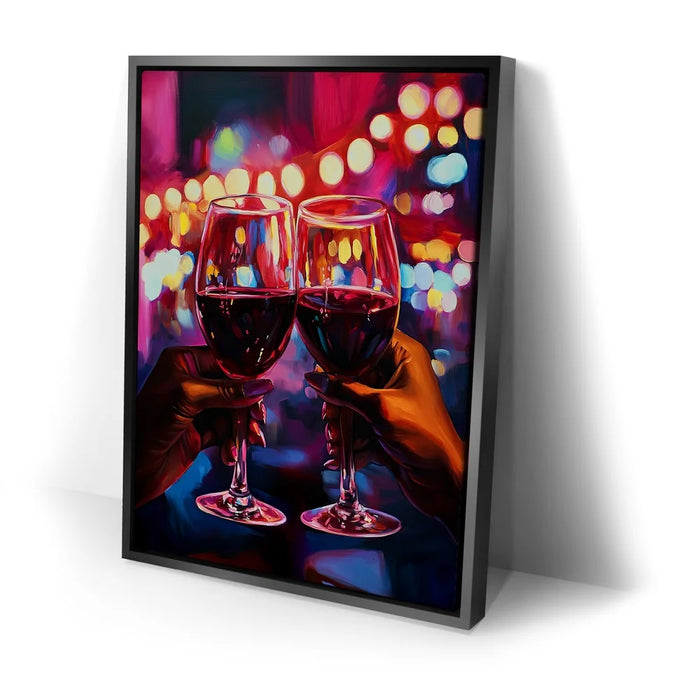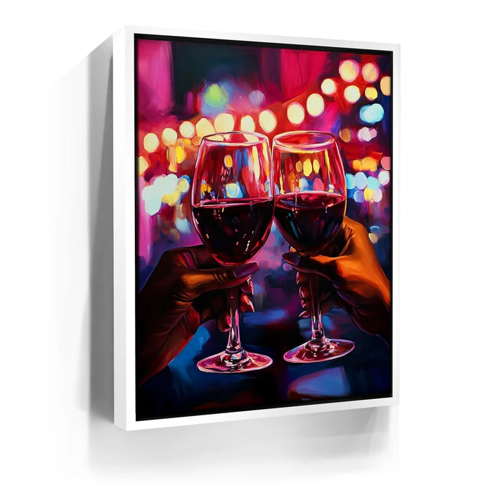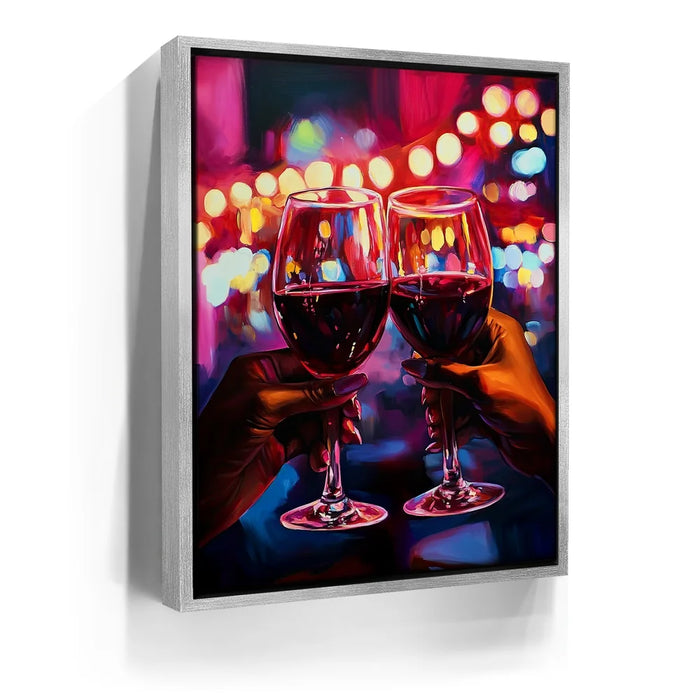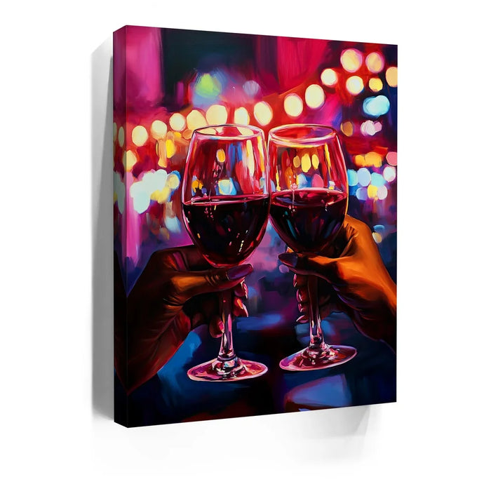 “Girls Night” by Kandise King is a vibrant celebration of connection, joy, and shared moments. This artwork captures two hands raising glasses of red wine against a dazzling backdrop of neon lights, symbolizing laughter, friendship, and unforgettable nights out.
