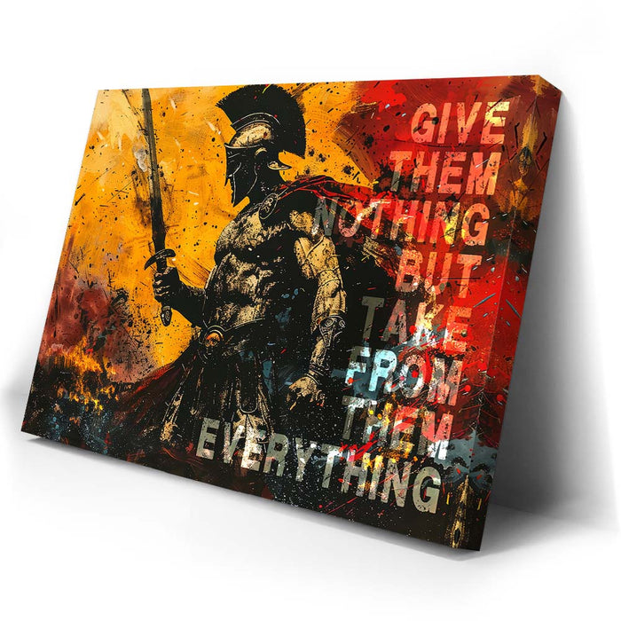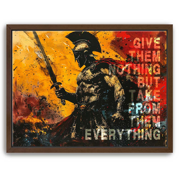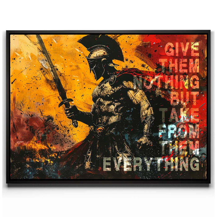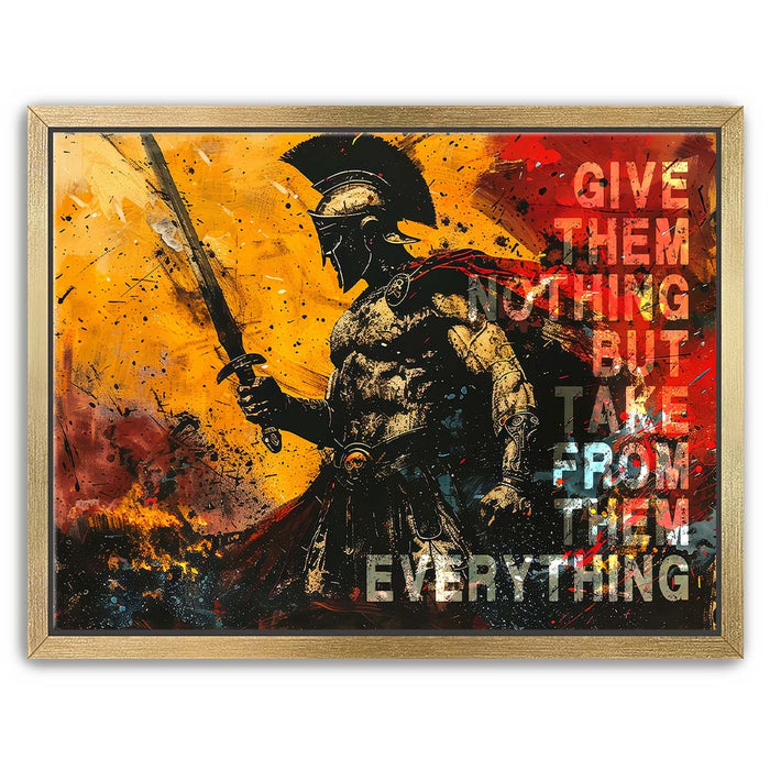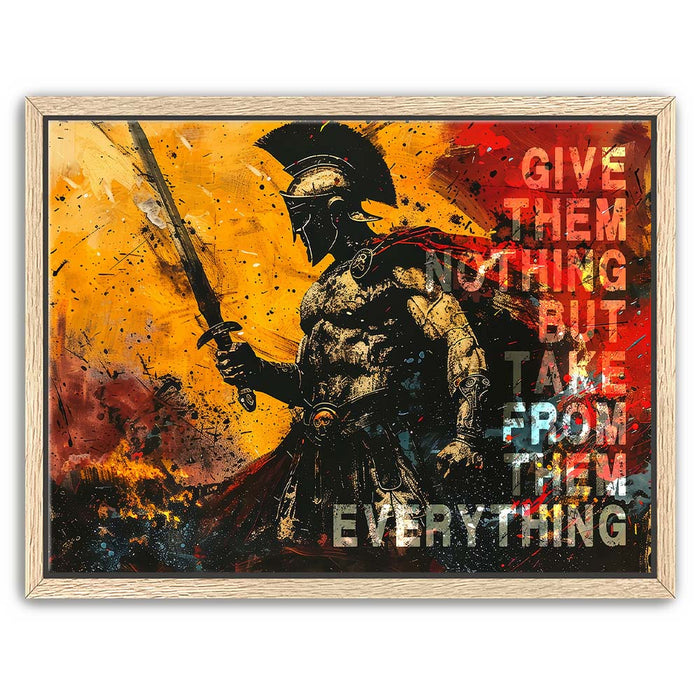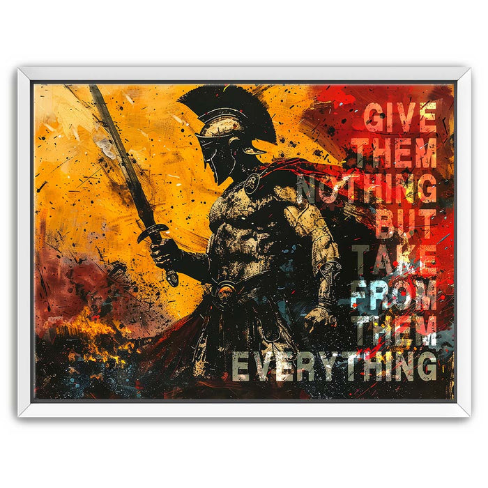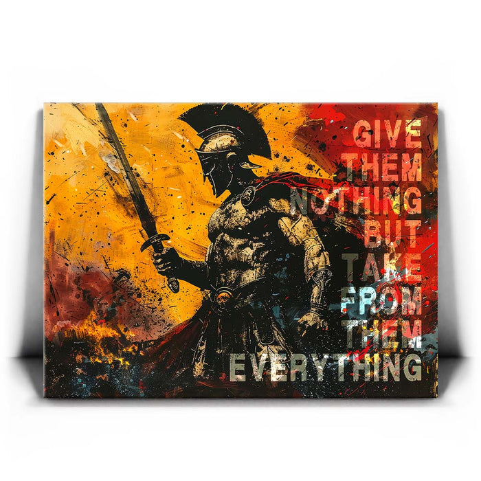 This striking artwork serves as a daily reminder to embrace your inner strength and stay focused on your goals. Ideal for gym spaces or motivational areas, "Give Nothing Take Everything" is a must-have for those who believe in pushing limits and achieving success against all odds.