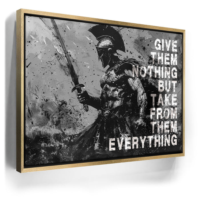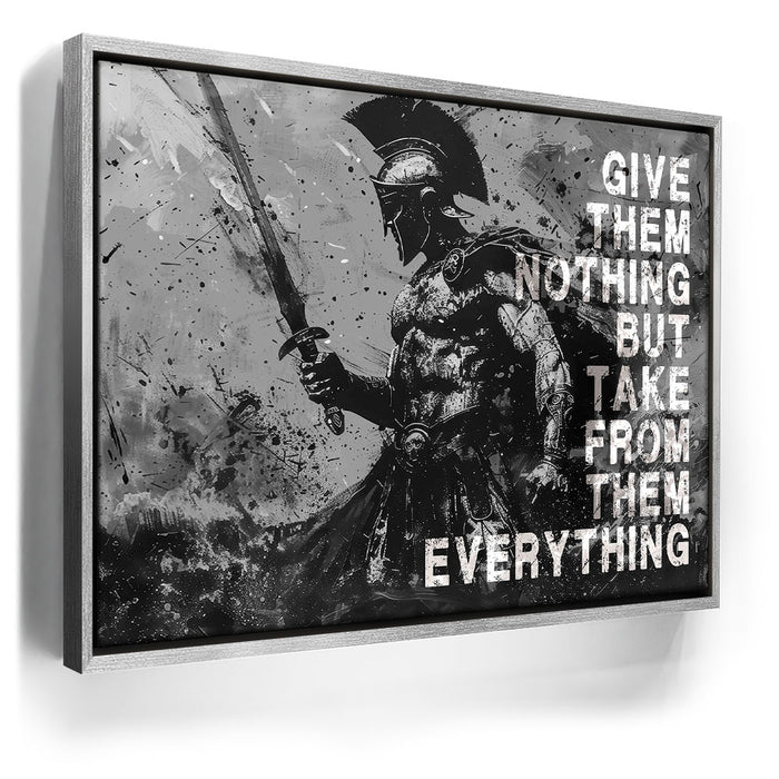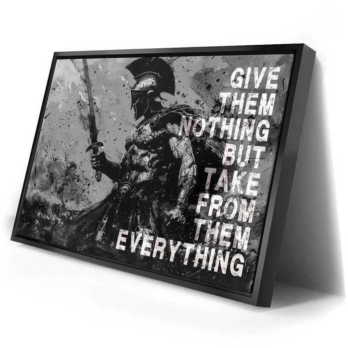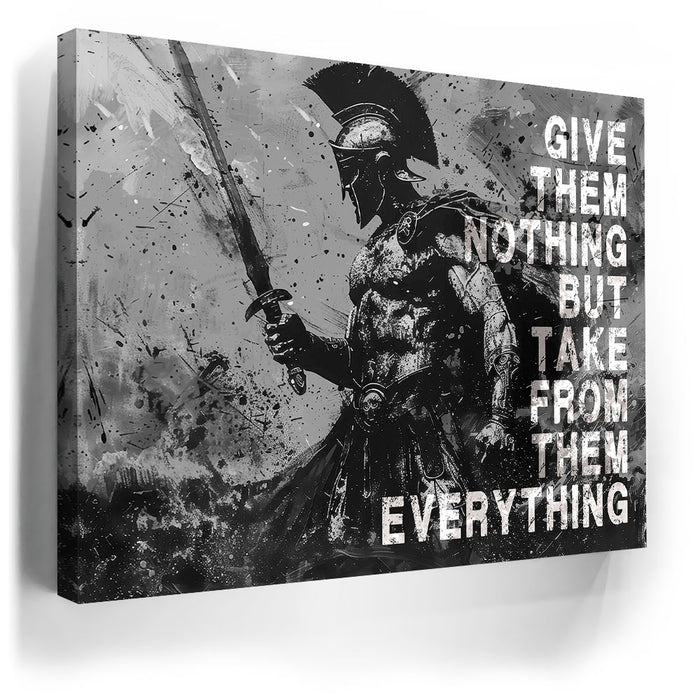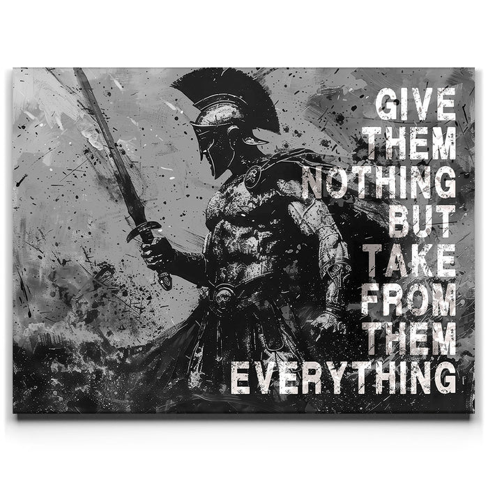 This striking artwork serves as a daily reminder to embrace your inner strength and stay focused on your goals. Ideal for gym spaces or motivational areas, "Give Nothing Take Everything" is a must-have for those who believe in pushing limits and achieving success against all odds.