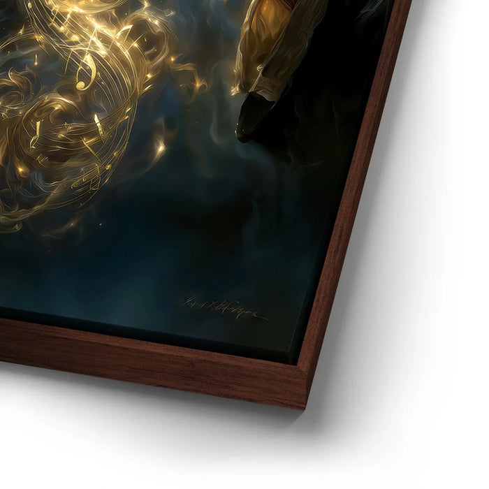 This artwork blends fantasy and musical expression, turning a single moment into a visual symphony. “Golden Overture” celebrates creativity, passion, and the beauty of art that transcends its medium, making it an unforgettable, cinematic portrait of sound in motion.