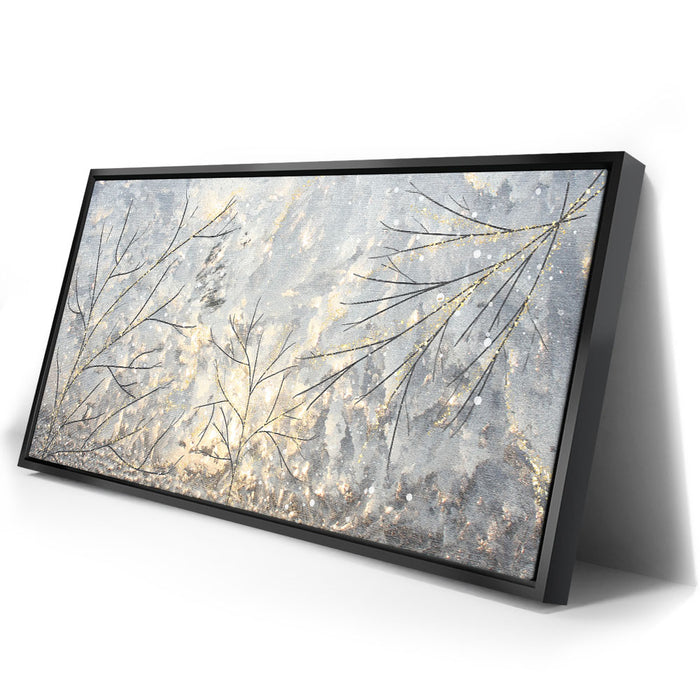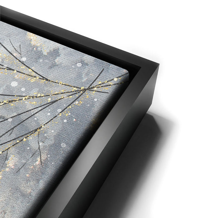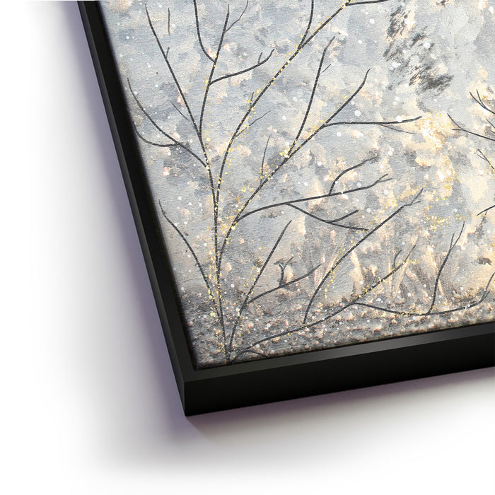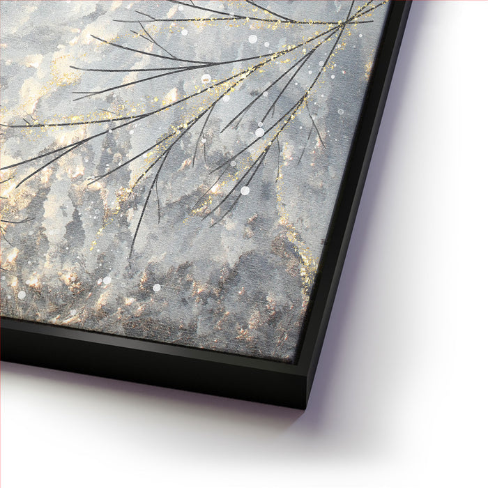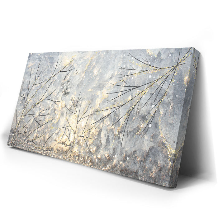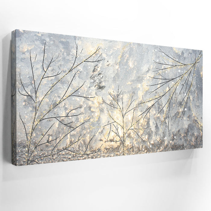 "Golden Snowfall" is a stunning abstract piece that captures the magical essence of winter with a festive twist. Featuring golden ornaments and glittering snowflakes falling gently on tree branches, this artwork embodies the spirit of the holiday season. The warm golden tones create a beautiful contrast against the cool winter backdrop, evoking feelings of peace and joy during Christmas time.