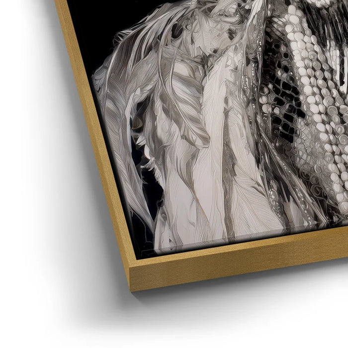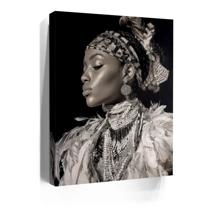 This piece emphasizes elegance, heritage, and powerful femininity. “Grace of Shadows” uses light and form to honor Black identity with sophistication and emotional depth, creating a captivating visual rooted in culture and artistry.