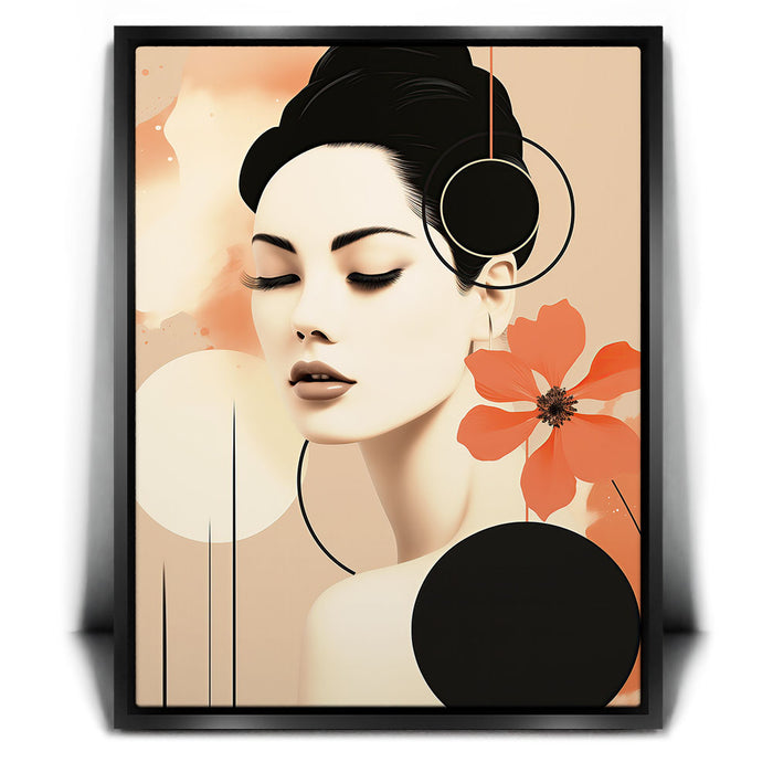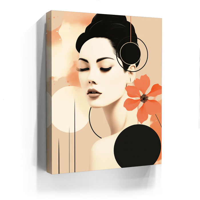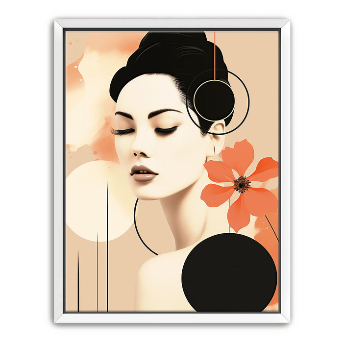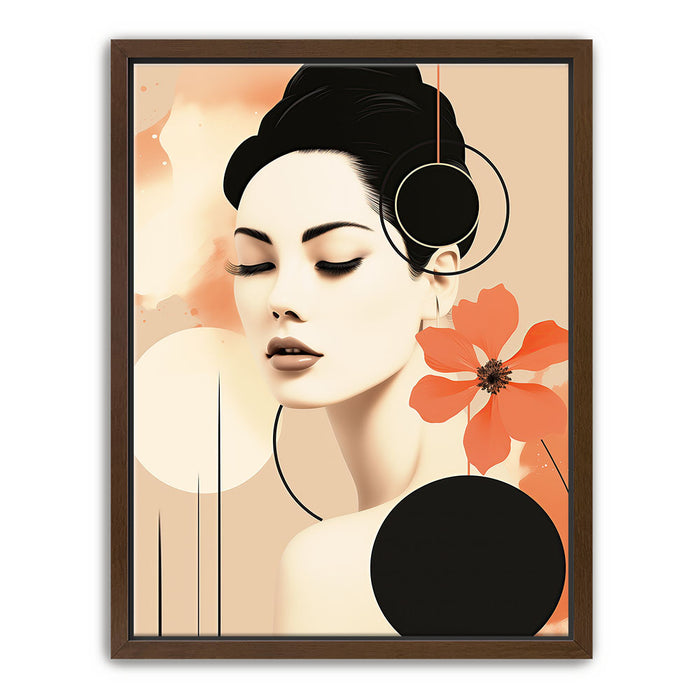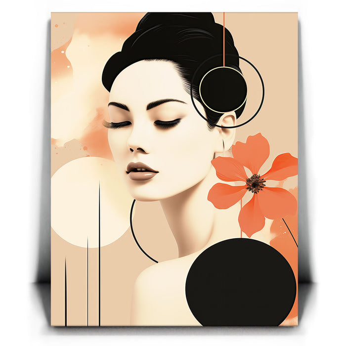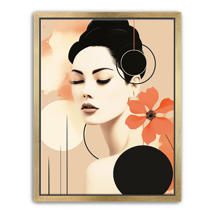 Graceful Beauty Muse by artist Stella Ygris is a captivating portrait of a beautiful woman surrounded by vibrant orange flowers. This colorful abstract painting highlights the elegance and grace of the female form, blending rich tones and delicate flower petals to create a stunning visual composition.