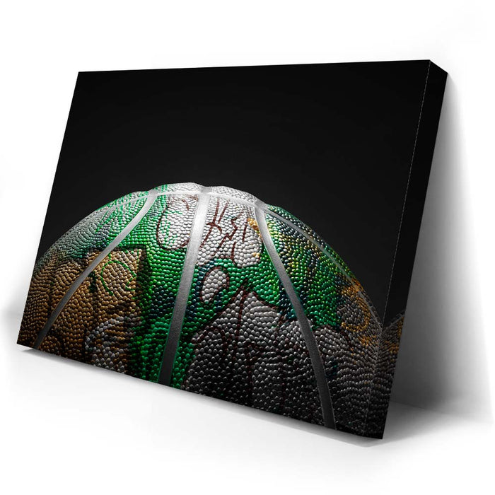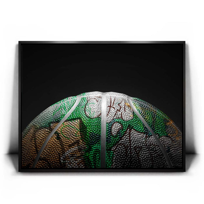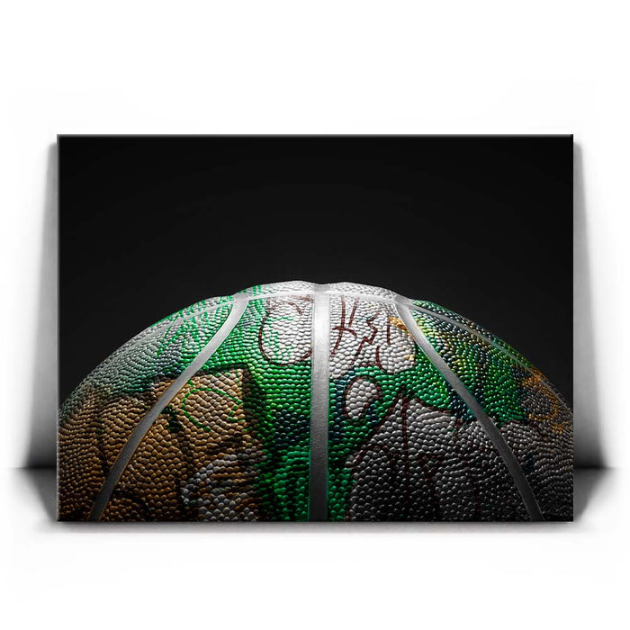 "Graffiti Basketball - Celtics Colors" is a visually striking piece that blends the gritty, urban vibe of street art with the iconic green, white, and gold colors of the Boston Celtics. The textured surface of the basketball showcases intricate graffiti-inspired designs, giving it a unique artistic twist that captures the dynamic energy of both basketball culture and urban art.