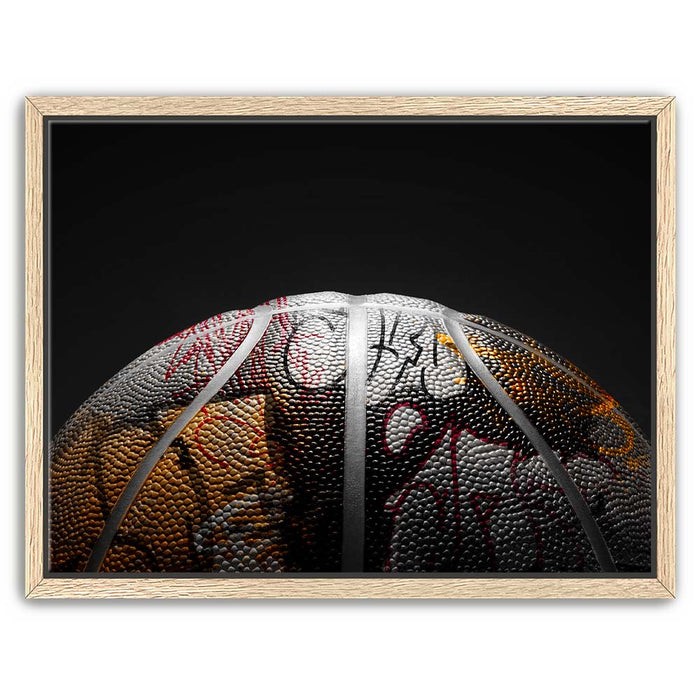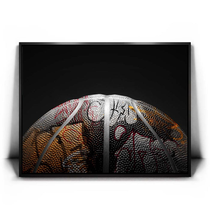 "Graffiti Basketball - Heat Colors" is a bold fusion of street art and sports culture. The basketball is intricately detailed with graffiti in a palette of warm, fiery tones, creating a visual representation of the heat and passion behind the game. The graffiti artwork on the ball adds an urban edge, while the textured surface of the ball enhances the contrast between art and sport.