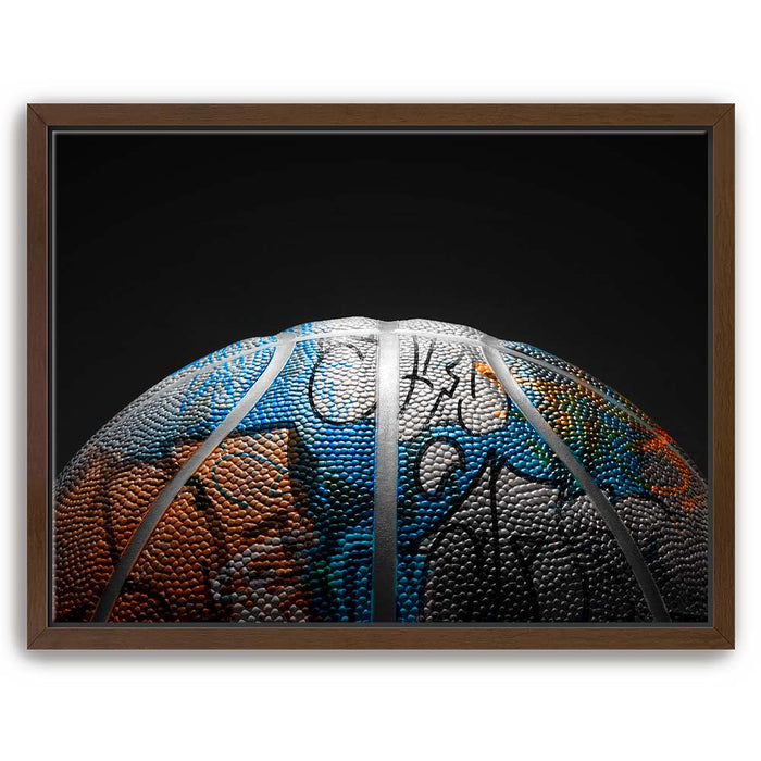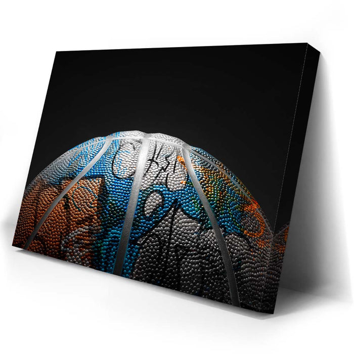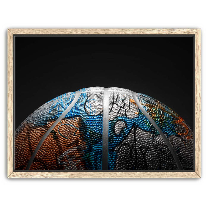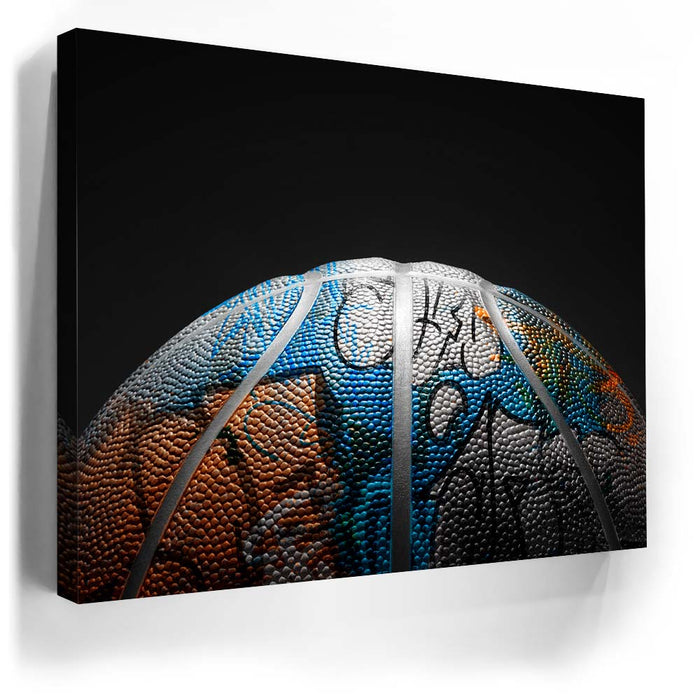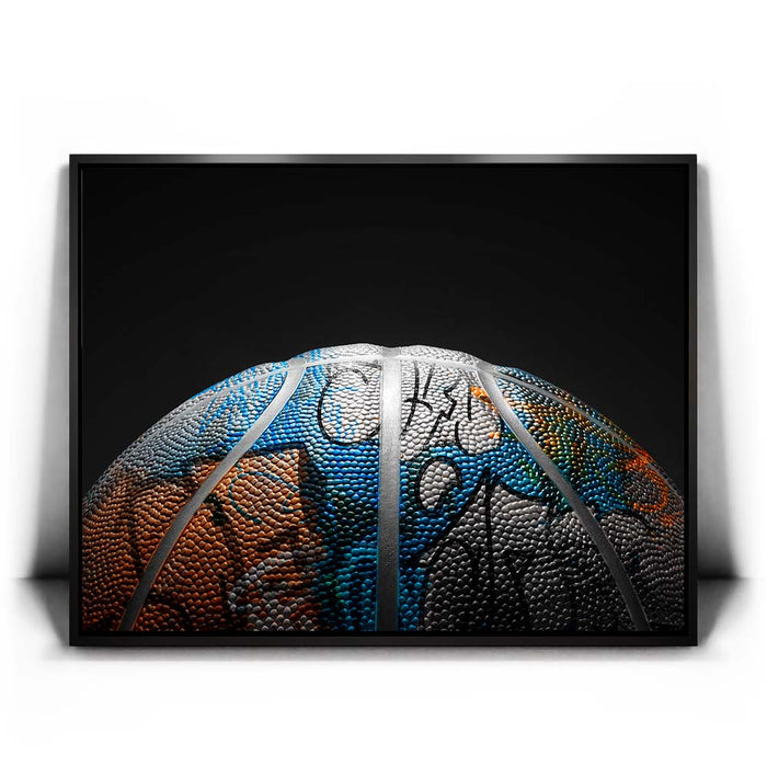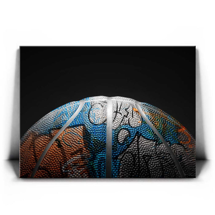 "Graffiti Basketball - Knicks Colors" brings the vibrant spirit of New York City and basketball culture to life. Featuring graffiti art in bold orange and blue, reminiscent of the iconic New York Knicks colors, this piece combines urban street art with the sport's energy and style. The intricate detailing and textured surface of the basketball create a dynamic interplay of color and form, making it an exciting visual piece.