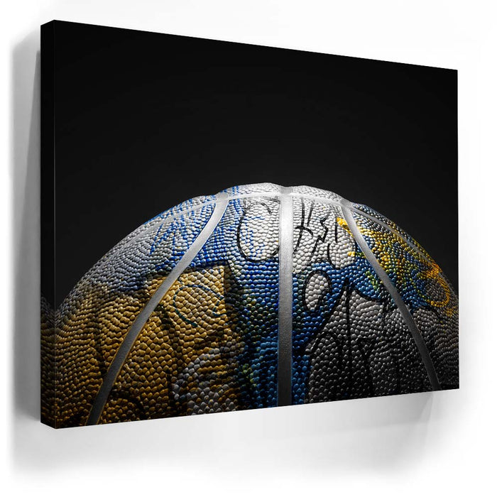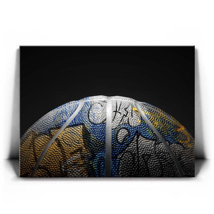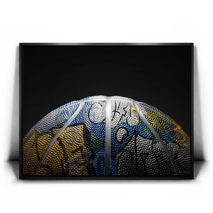 "Graffiti Basketball - Warriors Colors" brings together the vibrant blue and gold colors of the Golden State Warriors with the dynamic energy of urban graffiti. The graffiti elements are skillfully blended into the surface of the basketball, creating a modern and unique take on sports art. This piece captures the spirit of the Warriors and the boldness of street culture, making it a perfect display for both sports fans and lovers of contemporary art.