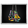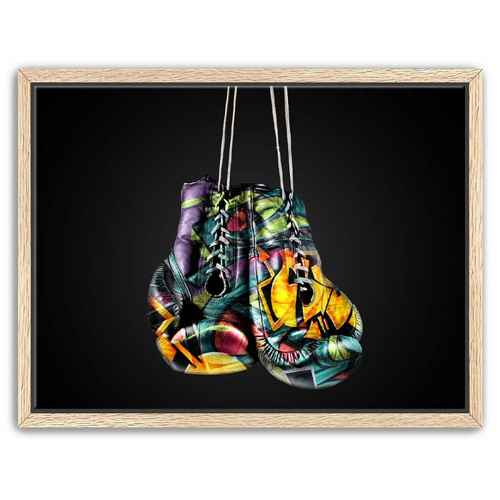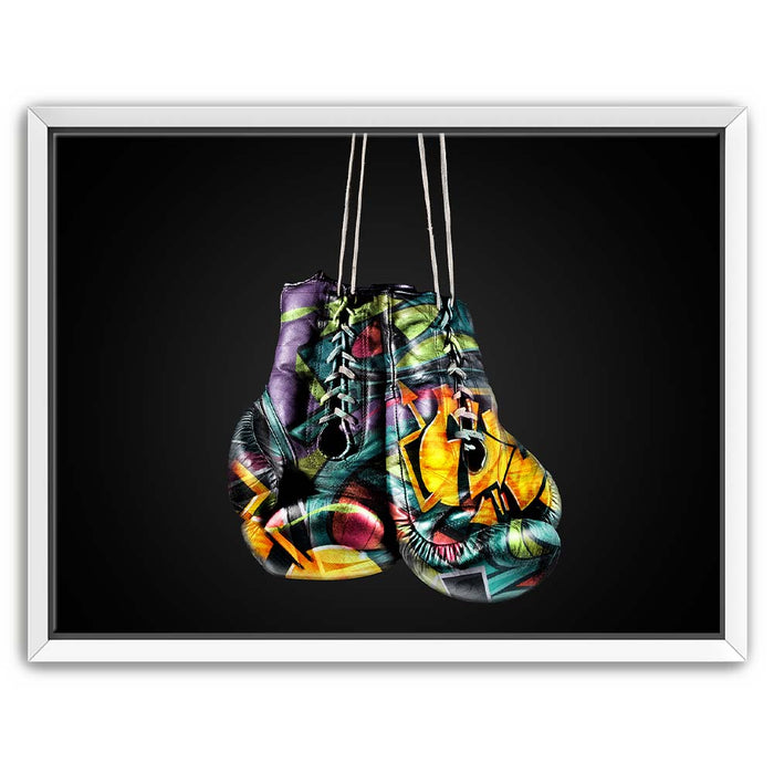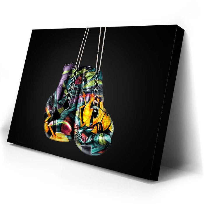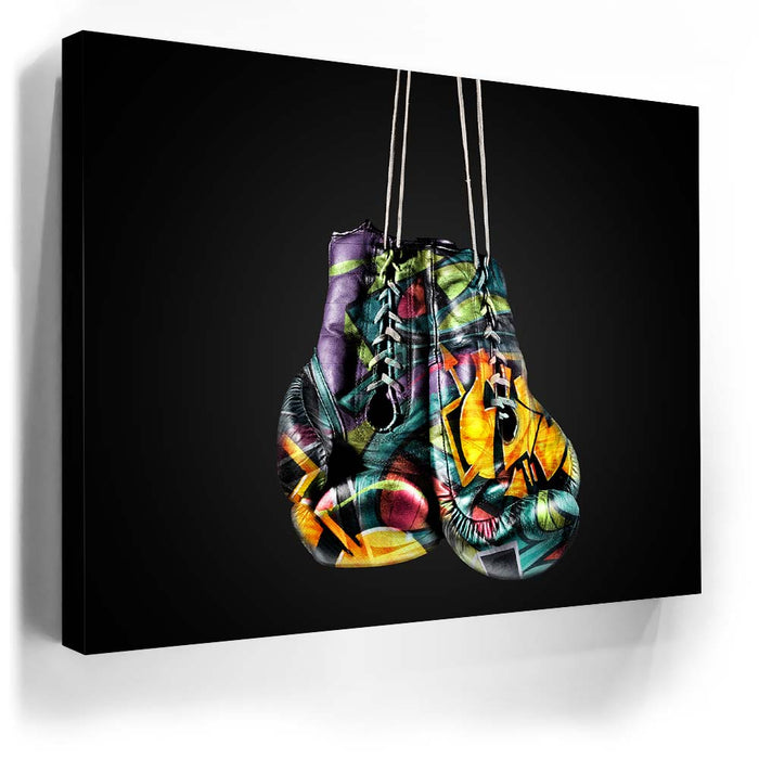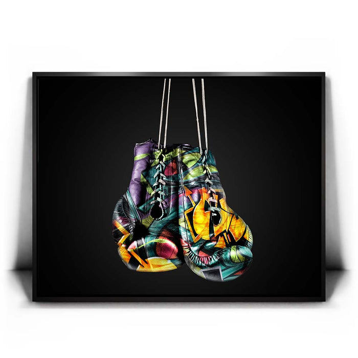 Add a burst of color and urban flair to your space with "Graffiti Boxing Gloves". This dynamic artwork features a pair of boxing gloves adorned with vibrant graffiti patterns, blending the intensity of the sport with the creativity of street art. The striking red tones combined with other bold colors make this piece a perfect statement for sports enthusiasts and lovers of contemporary art alike. Whether you're a fan of boxing or appreciate the fusion of athleticism and art, these gloves represent power, resilience, and the spirit of the streets.