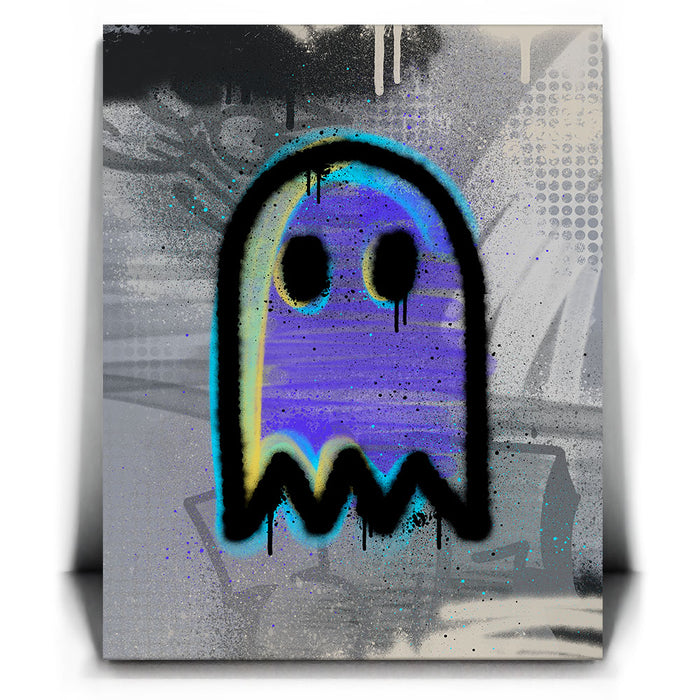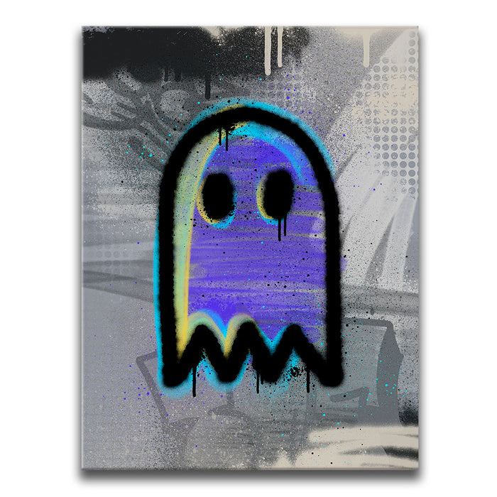 "Graffiti Ghost" brings an iconic, playful specter to life through the bold, expressive medium of graffiti. This artwork features a ghost face, outlined in striking black, with vibrant hues of purple and blue, capturing the mysterious yet fun essence of the supernatural. Perfect for fans of urban art and ghostly themes, this piece blends the edgy appeal of street art with a touch of the eerie, making it a standout addition to any modern space.