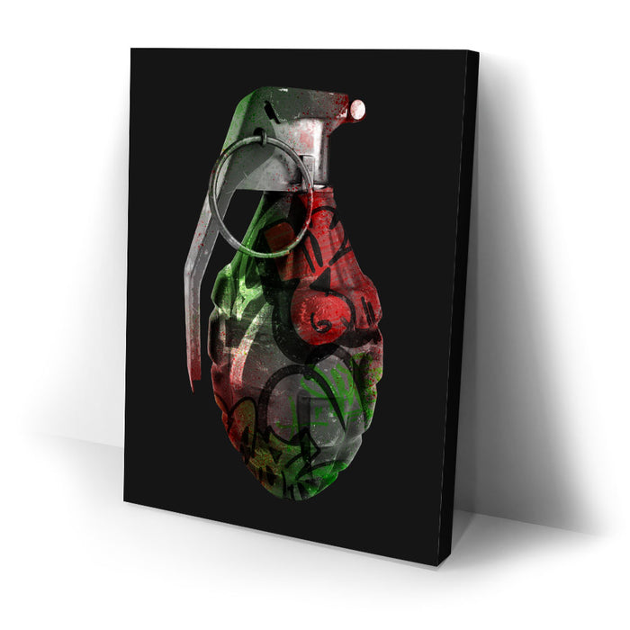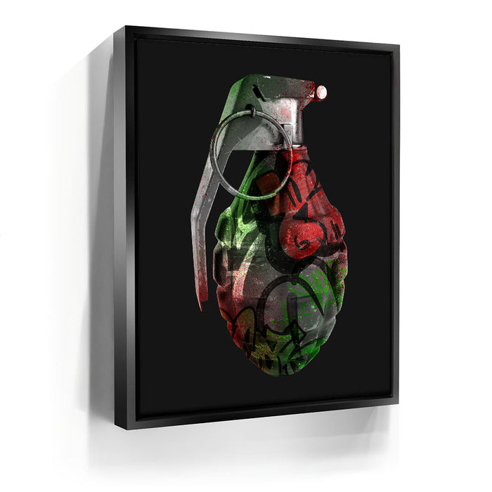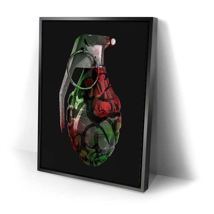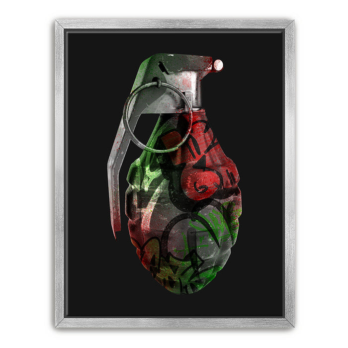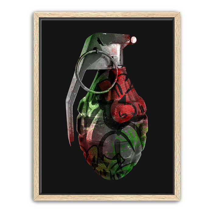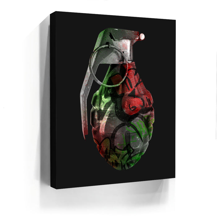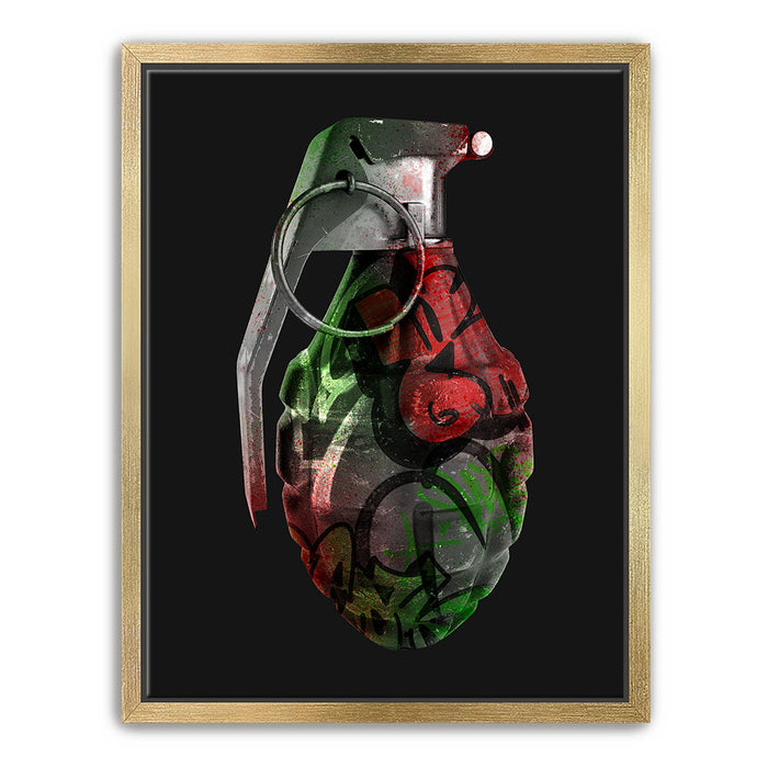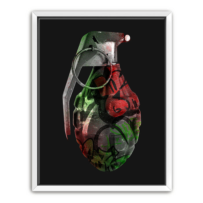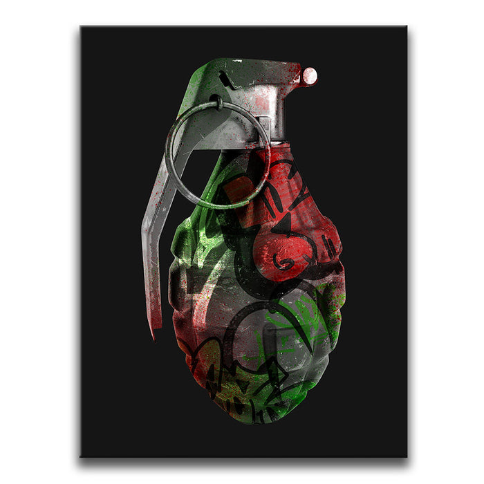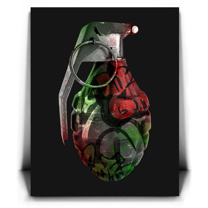 "Graffiti Grenade" is a powerful fusion of urban street art and industrial design. This bold piece showcases a classic grenade painted with vibrant graffiti elements, bringing together themes of rebellion, street culture, and modern conflict. The contrasting colors and edgy design make it a striking visual representation of tension and creativity, perfect for fans of contemporary and statement-making art.