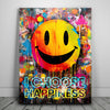 Ideal for fans of street art and those who embrace happiness, this artwork radiates energy and joy. The dynamic colors and graffiti elements bring a splash of creativity and fun to any room, reminding viewers to always choose happiness.