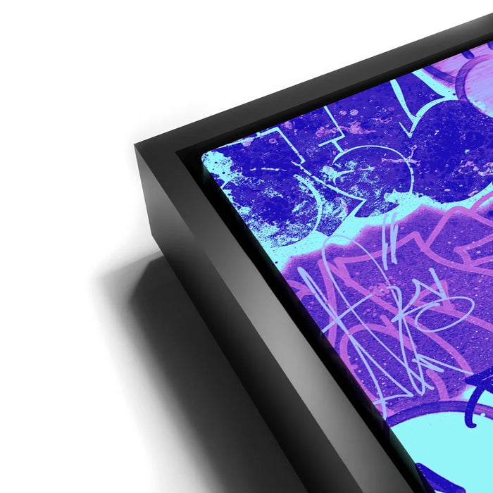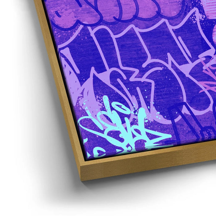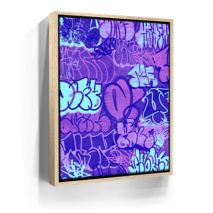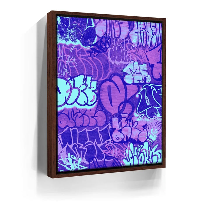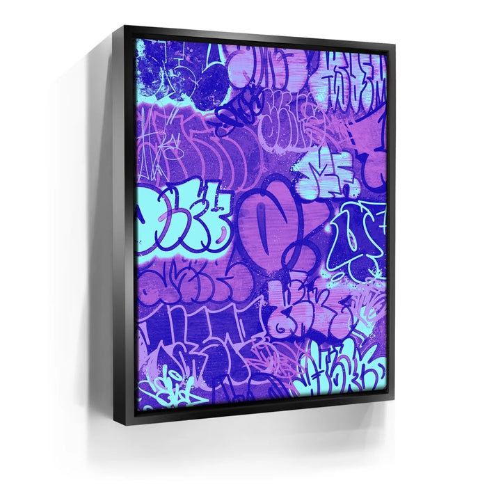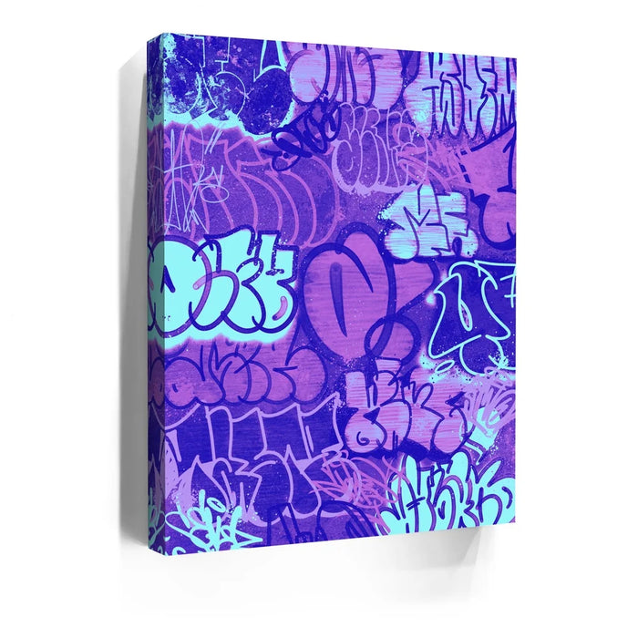 Graffiti Wall - Neon electrifies the room with an explosion of vibrant purples, blues, and pinks layered in bold, overlapping street tags. This piece captures the raw energy and rhythm of city walls — alive with color, attitude, and movement. The glowing neon palette adds a modern twist to classic graffiti style, blending chaos and creativity into a stunning visual statement. Perfect for anyone who loves urban art and wants to bring that edgy, underground pulse into their space.