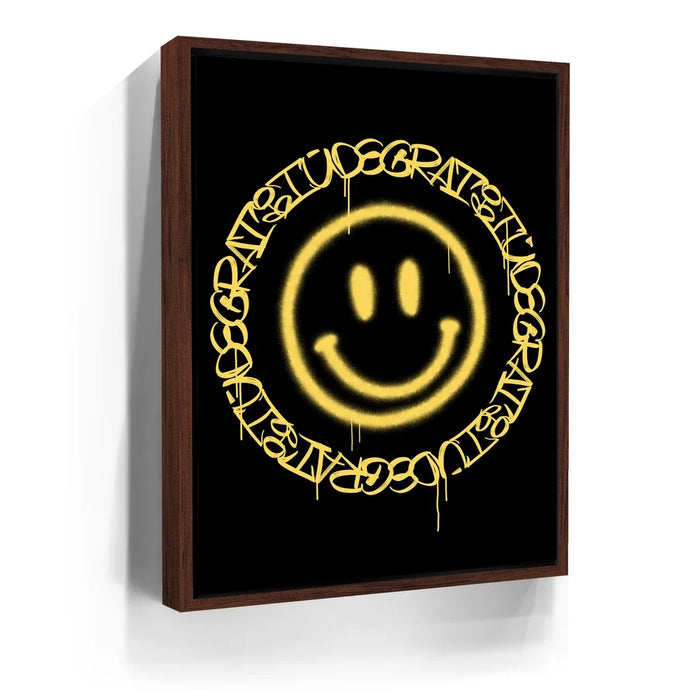 Gratitude & Happiness - Black fuses street-style attitude with mindful inspiration. A bold, graffiti-style smiley face pops against the deep black background, surrounded by looping “Gratitude” text that drips with raw, urban energy. The design reflects the idea that happiness isn’t flashy — it’s grounded in appreciation and perspective. Combining a gritty aesthetic with a positive message, this piece channels modern graffiti culture while reminding you that gratitude fuels true happiness.