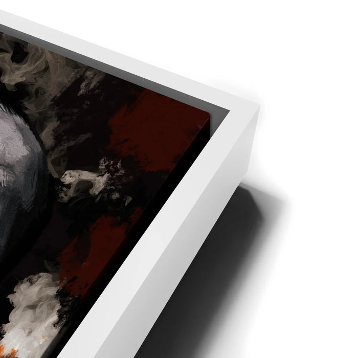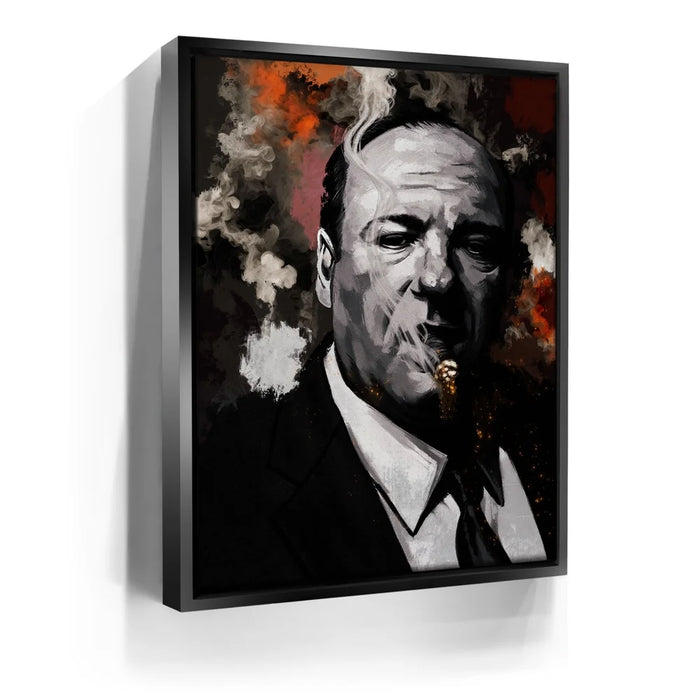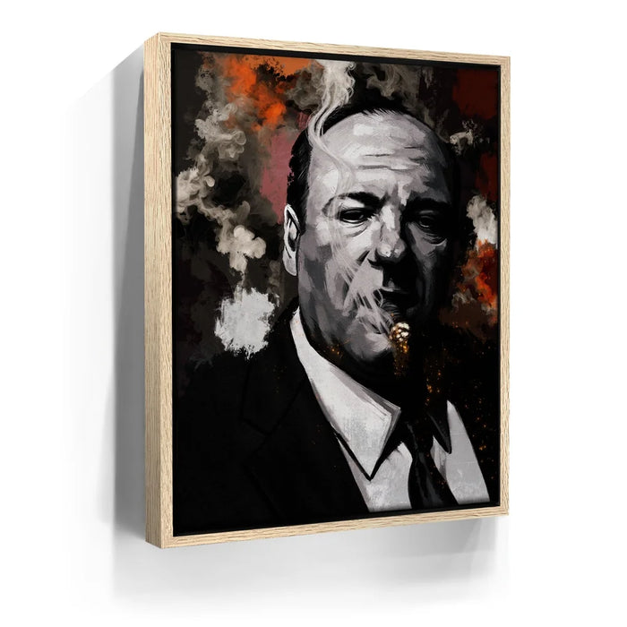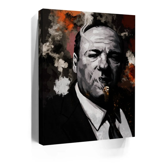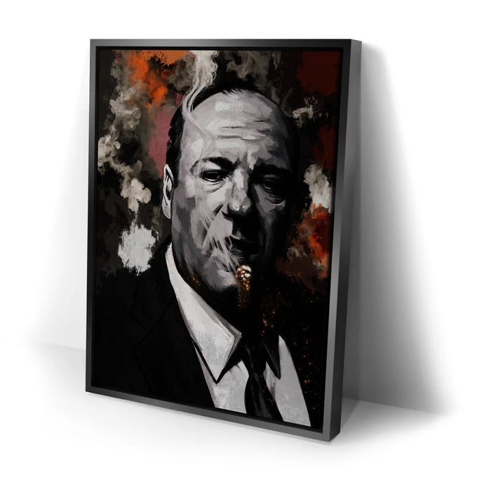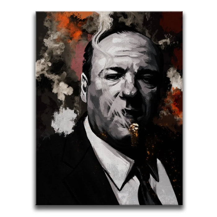 Head Of The Family - Black & Grey captures the commanding presence and quiet intensity of a true leader. Rendered in bold monochrome tones with fiery accents, this striking portrait blends realism with painterly drama. The smoldering cigar and rising smoke add depth and attitude, making it a powerful centerpiece for modern interiors. Ideal for those who appreciate strength, legacy, and the art of influence.