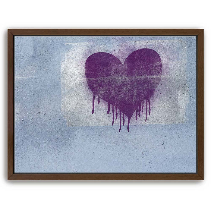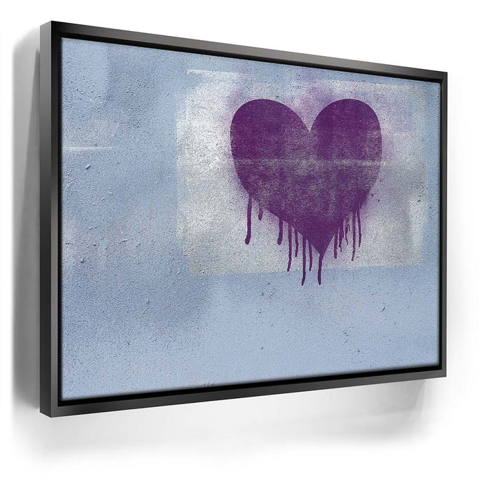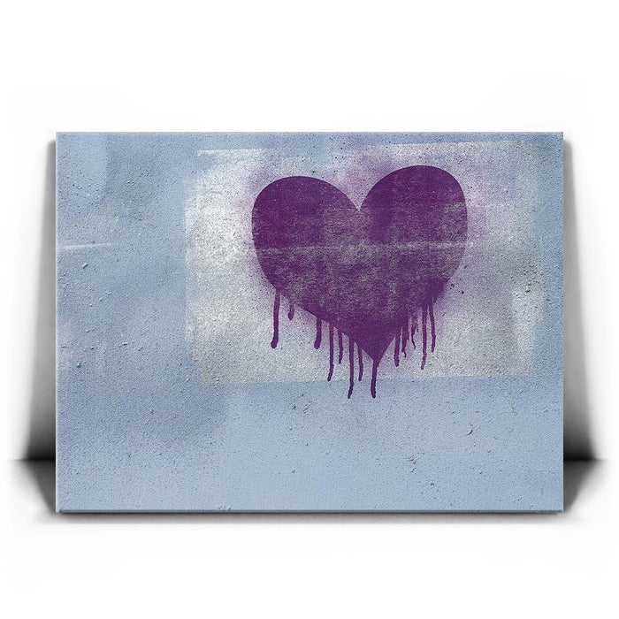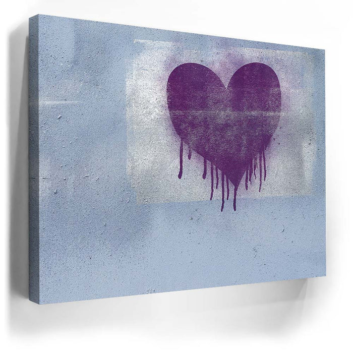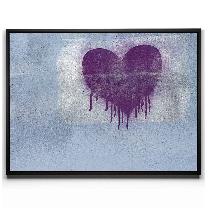 Add a touch of modern elegance to your space with this minimalist abstract wall art titled Heart's Whisper. Featuring a simple yet powerful design, the artwork displays a purple heart with a unique paint drip effect, set against a textured background that enhances its abstract appeal.